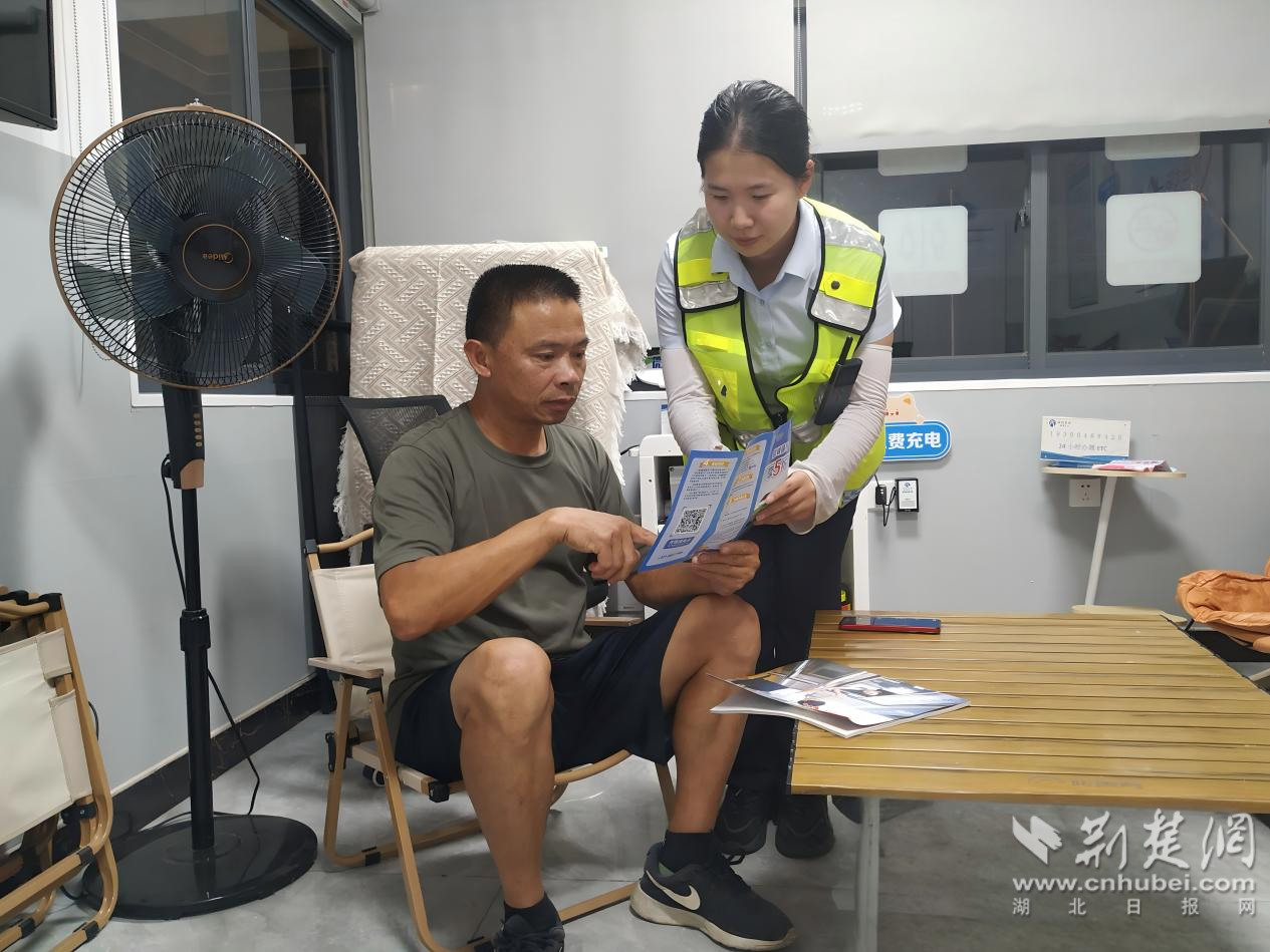 工作人员一边安抚刘师傅的焦虑情绪,一边详细解答关于高速自驾路线以及高速服务区周边配套设施等问题。刘师傅焦急地说:“从武当山回来,途中就发现电瓶亏电严重,一路都在着急找充电桩,可算碰到救星了!”