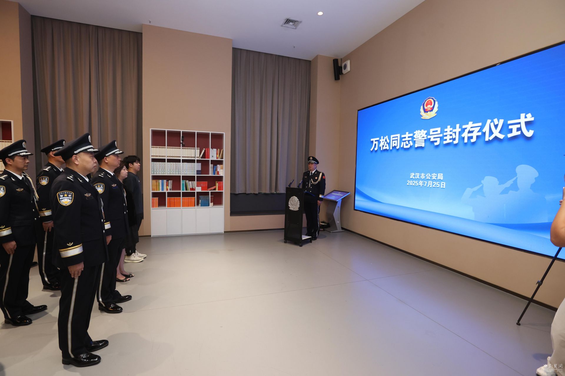 荆楚网(湖北日报网)讯(记者 白云 实习生 潘妍 通讯员 武龚萱)“我宣布,封存万松同志生前使用警号012694!”“敬礼!”7月25日上午,武汉市公安局党建中心庄严肃穆。全省优秀共产党员、因公牺牲的武汉公安民警万松的警号封存仪式在此举行。50名民警代表整齐列队,共同见证这一铭记忠诚与奉献的重要时刻。