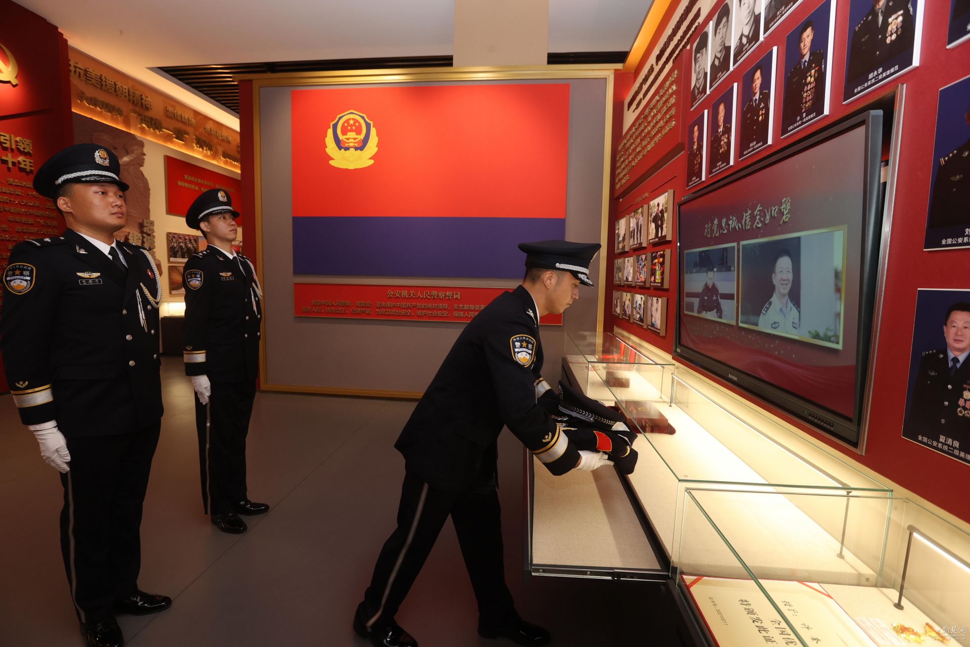 “敬礼!”一声令下,现场民警齐刷刷举起右手,向昔日并肩战斗的战友致敬。激昂雄壮的《中国人民警察警歌》随即响起。在歌声中,大家目送警号012694被移送至市公安局党建中心英模英烈事迹展示厅存放。