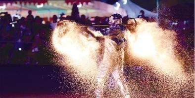 兴山昭君原野旅游度假区火壶表演。记者 黄翔 摄