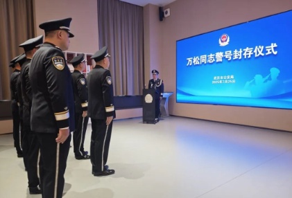 7月25日上午,武汉市公安局在党建中心举行仪式,万松警号012694正式封存,与邱建军烈士的警号相邻。5月26日,万松被同事发现在办公室内昏迷不醒。5月27日凌晨,经抢救无效不幸因公牺牲,年仅50岁。