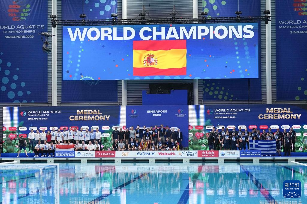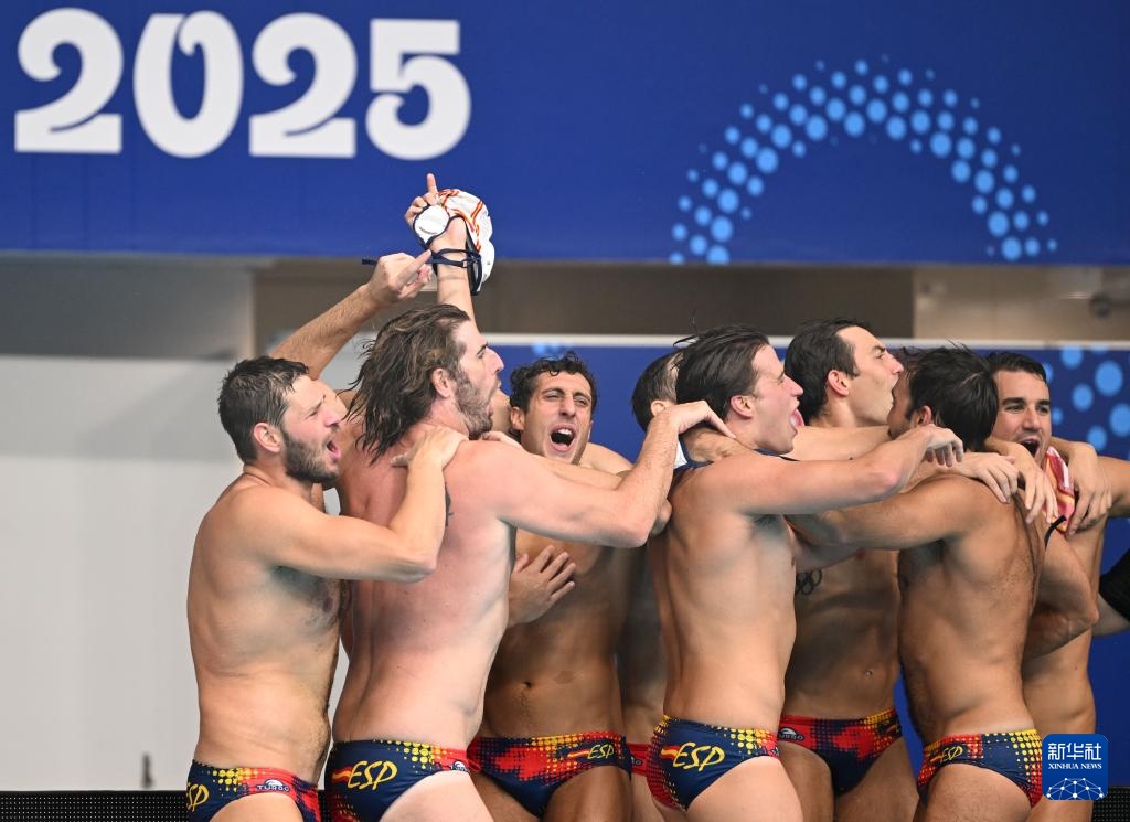 当日,在新加坡举行的2025年世界游泳锦标赛男子水球金牌赛中,西班牙队15比13战胜匈牙利队,获得金牌。