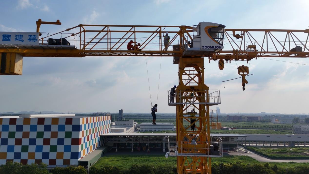 在坚固的平衡臂钢梁上,消防员迅速设置好“双8字节”锚点,构建起双重保险的锚固系统,并稳妥地为昏迷者穿戴好全身吊带。为确保绝对安全,另一名塔吊司机精准操控,将平衡臂平稳旋转,直至其正下方调整为一处空旷平整的安全区域。
