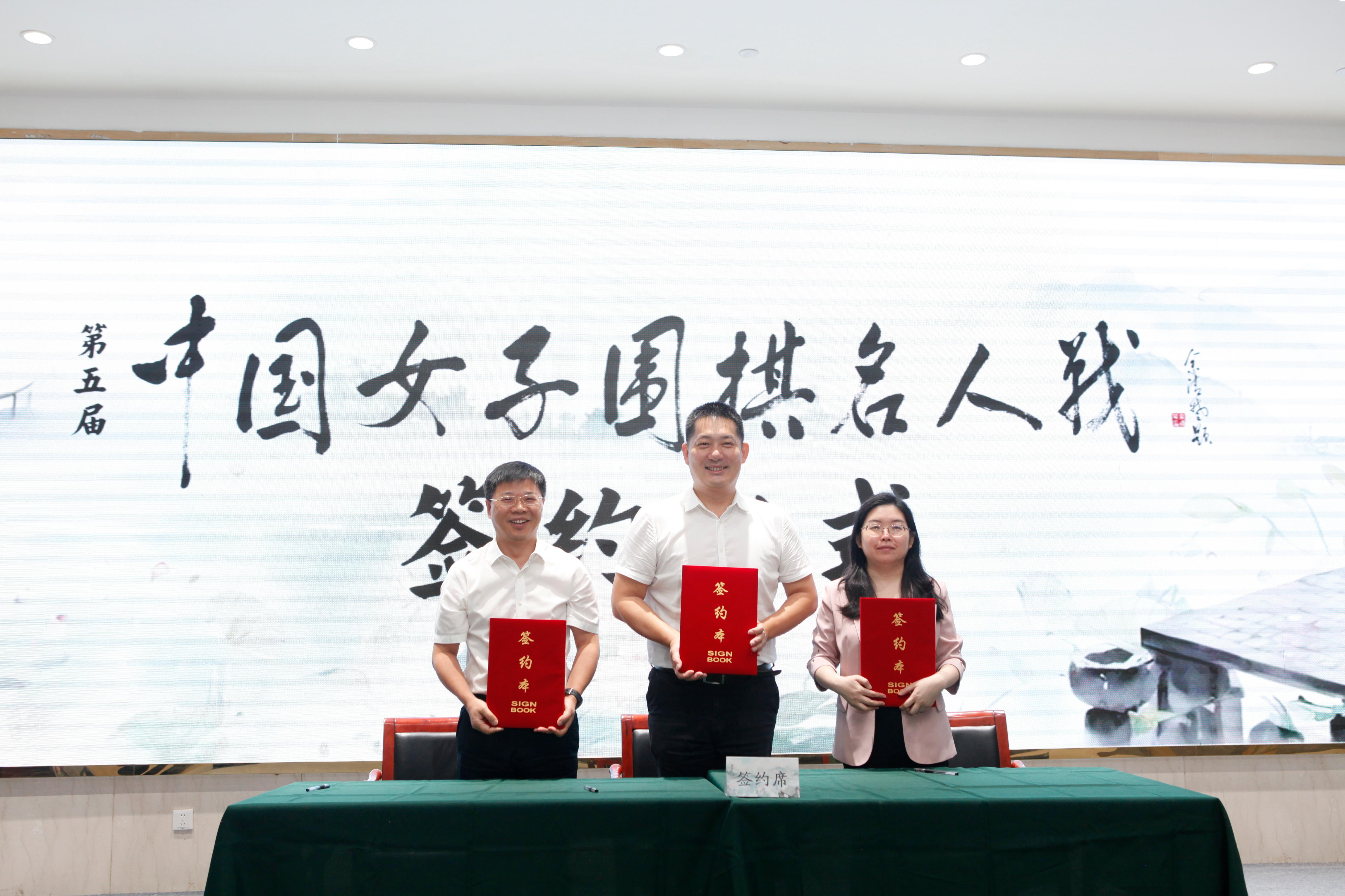 人民网北京7月25日电 (记者李乃妍)7月25日上午,第五届中国女子围棋名人战签约仪式在中国棋院举行。从本届开始,中国女子围棋名人战将连续三年落户江苏省宿迁市宿豫区。中国围棋协会主席常昊,人民体育总经理赵娟,宿豫区人民政府副区长康建平等领导嘉宾出席签约仪式。