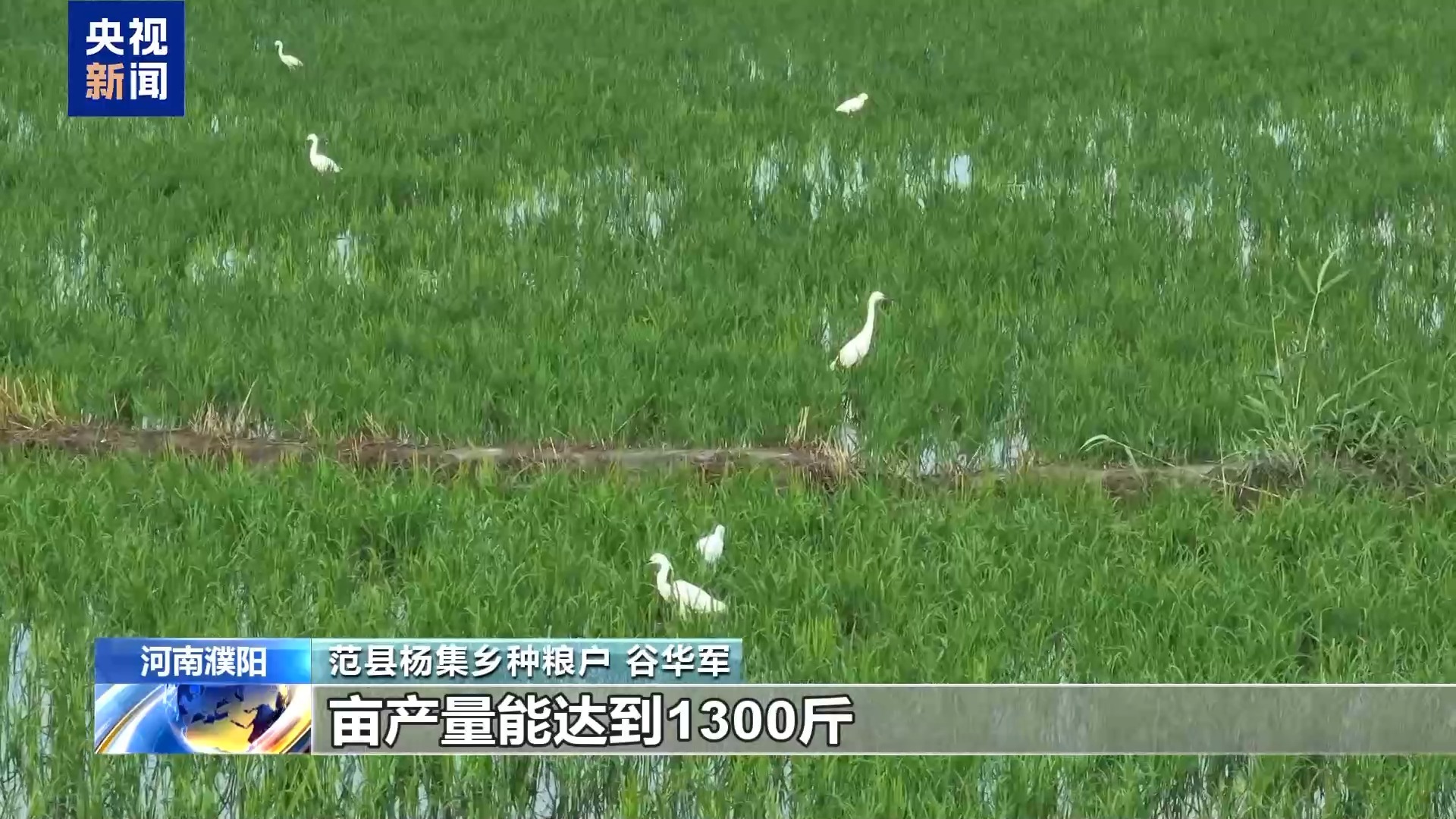 范县杨集乡种粮户 谷华军:一九九几年的时候,水稻的亩产500斤到600斤,现在排灌设施都好了,肥力也提高了,亩产量能达到1300斤。