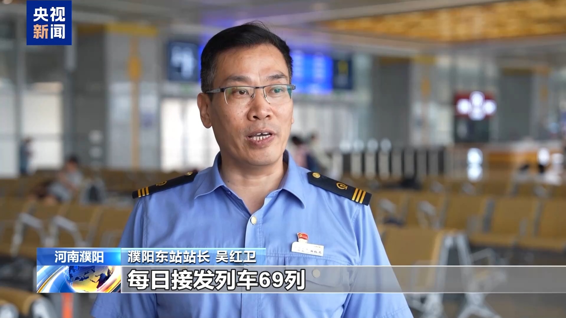 濮阳东站站长 吴红卫:尤其是进入暑运,每日接发列车69列,高峰期每5分钟就有一趟列车。