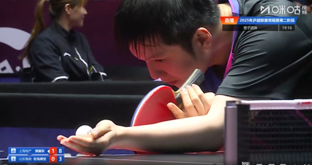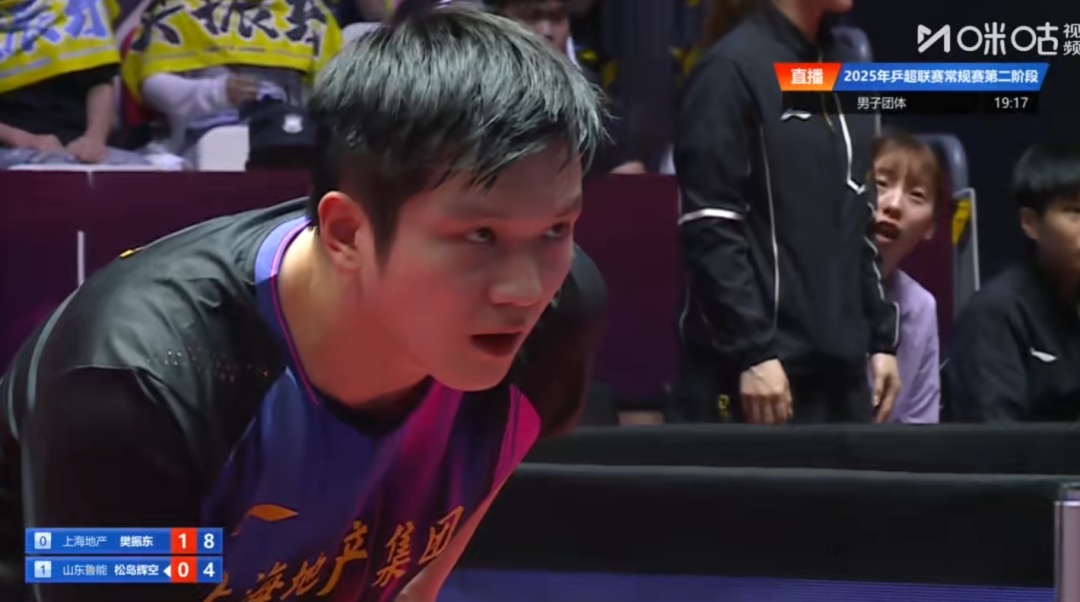 2025乒超联赛第二阶段比赛27日晚上继续进行,在上海地产集团队对阵山东鲁能队的男子团体比赛中,樊振东在第二场男单比赛中出场,3比0战胜松岛辉空,三局比分12-10,11-4,11-9,创造本赛季乒超联赛个人十二连胜。