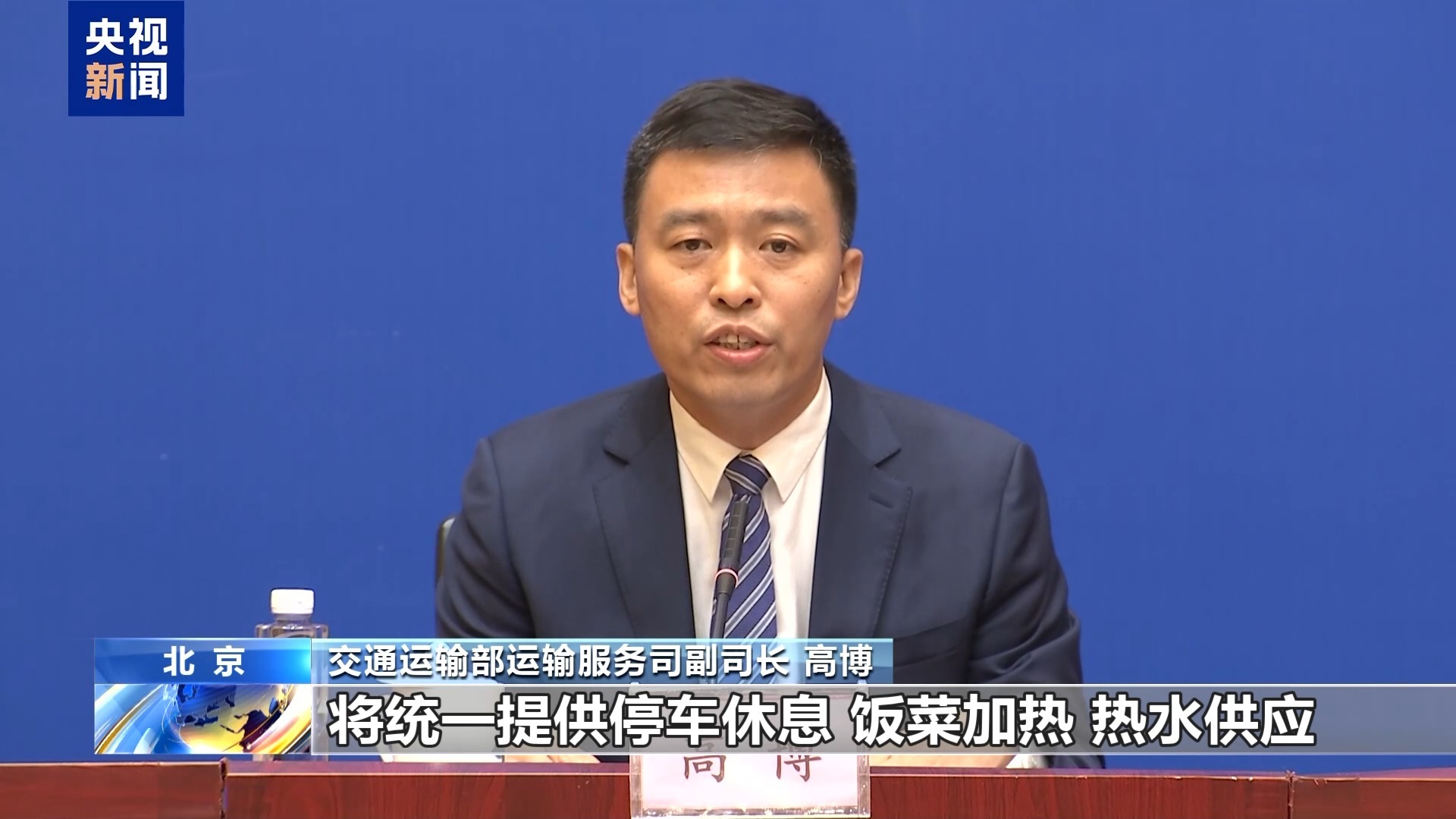 交通运输部运输服务司副司长 高博:改造完成后的1000个标准化规范化“司机之家”,将统一提供停车休息、热水供应、饭菜加热、淋浴、洗衣等5项免费基本服务,有的“司机之家”还将提供优惠餐饮、车辆维修、应急救援、政务办理等服务,努力让司机朋友在运输途中感受到家的温暖。
