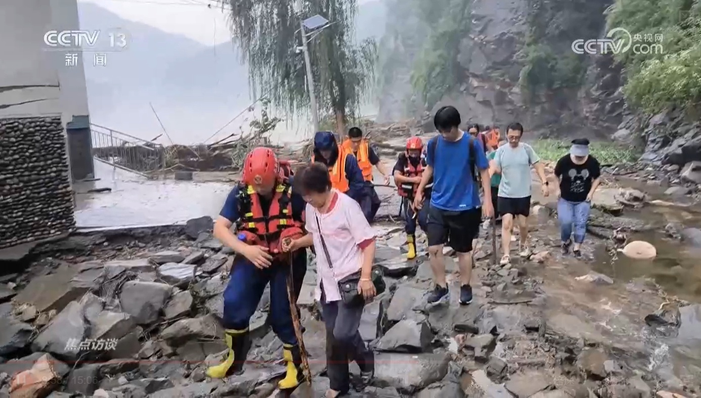 北京市密云区消防救援支队组织干部科科长魏晓东:“一直到凌晨两点左右,我们把能到达的这个村庄进行了摸排。一些道路冲毁严重的无法到达的,我们也是通过卫星电话确保相关人员安全。”