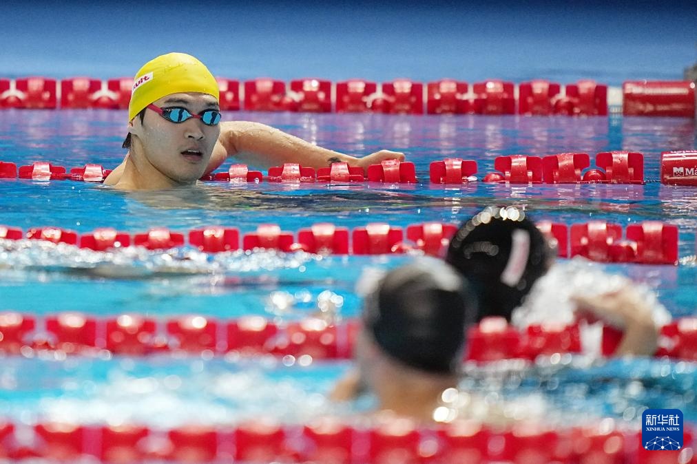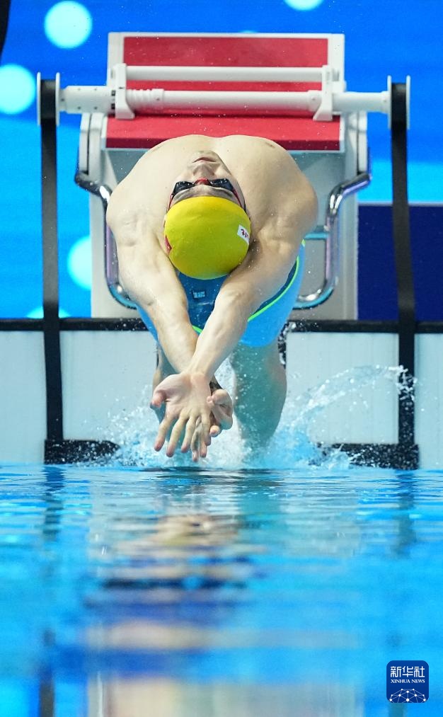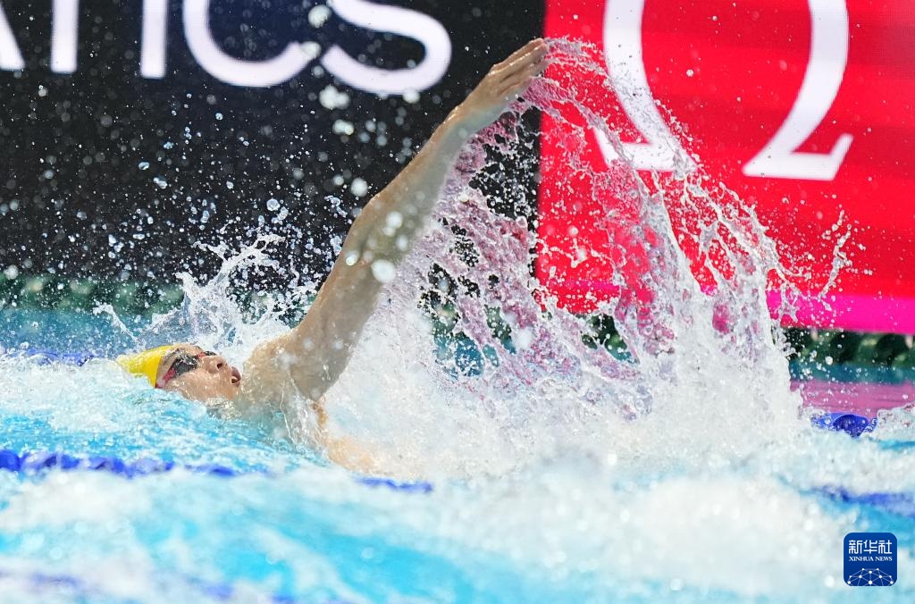 当日,2025年世界游泳锦标赛游泳男子100米仰泳半决赛在新加坡举行。
