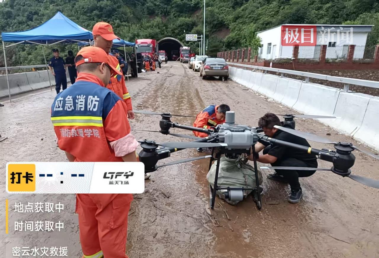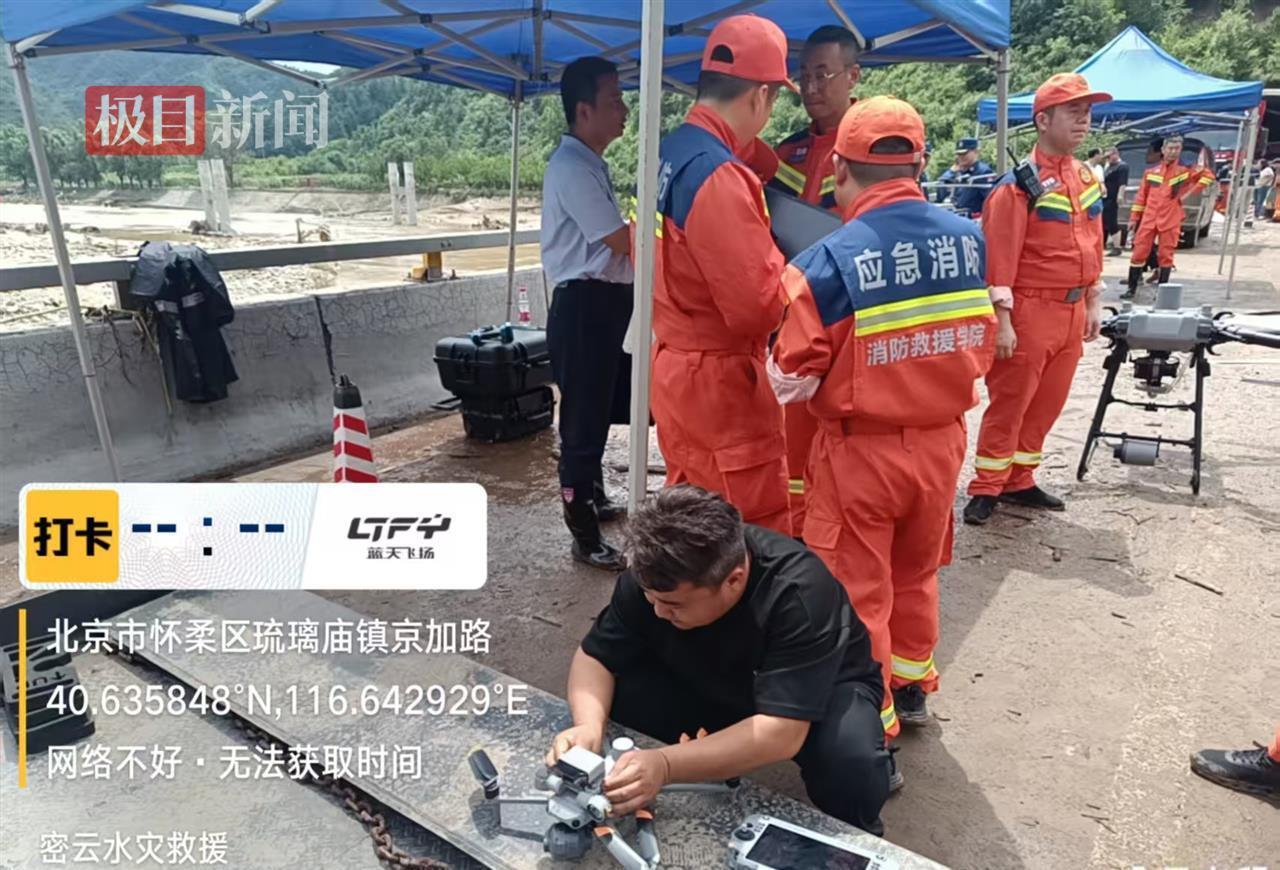 7月29日,极目新闻记者联系到北京蓝天飞扬无人机考试中心,一名陈姓工作人员表示,7月27日凌晨,他们共派出了8名无人机培训教官,携带6台大型运载无人机和多台具备红外监控和喊话功能的小型无人机,分两路前往受灾严重的密云区、怀柔区琉璃庙镇支援。