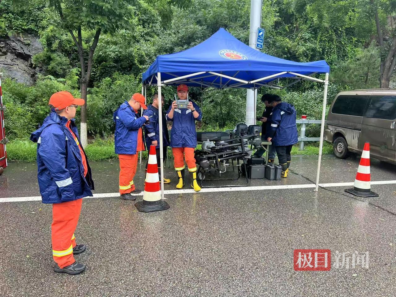极目新闻记者了解到,除大型运载无人机外,他们携带的小型无人机具备红外监控和喊话功能,能全天候帮助救援人员搜寻被困群众,并喊话引导其前往安全区域。