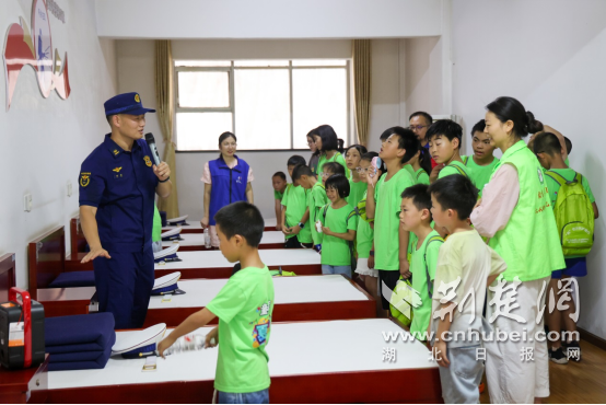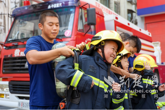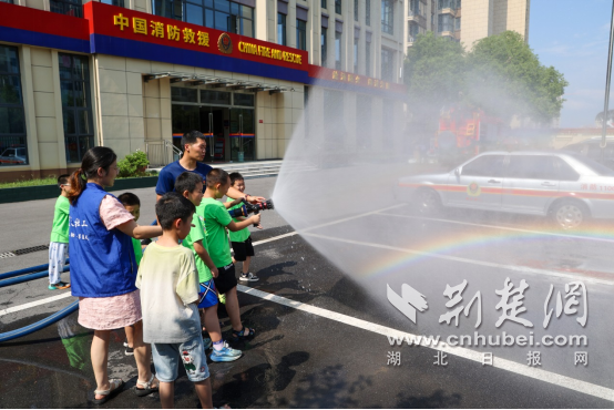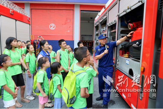 荆楚网(湖北日报网)讯(通讯员 魏欢欢)为进一步强化暑期消防安全宣传教育成效,7月26日上午,荆门市未成年人社会保护中心联合蓝天社会工作服务中心,组织50余名关爱家庭儿童走进掇刀区消防救援大队长坂坡路特勤站,开展“童心荆彩•快乐成长”夏令营主题实践示范活动,让孩子们“零距离”感受消防、学习消防。