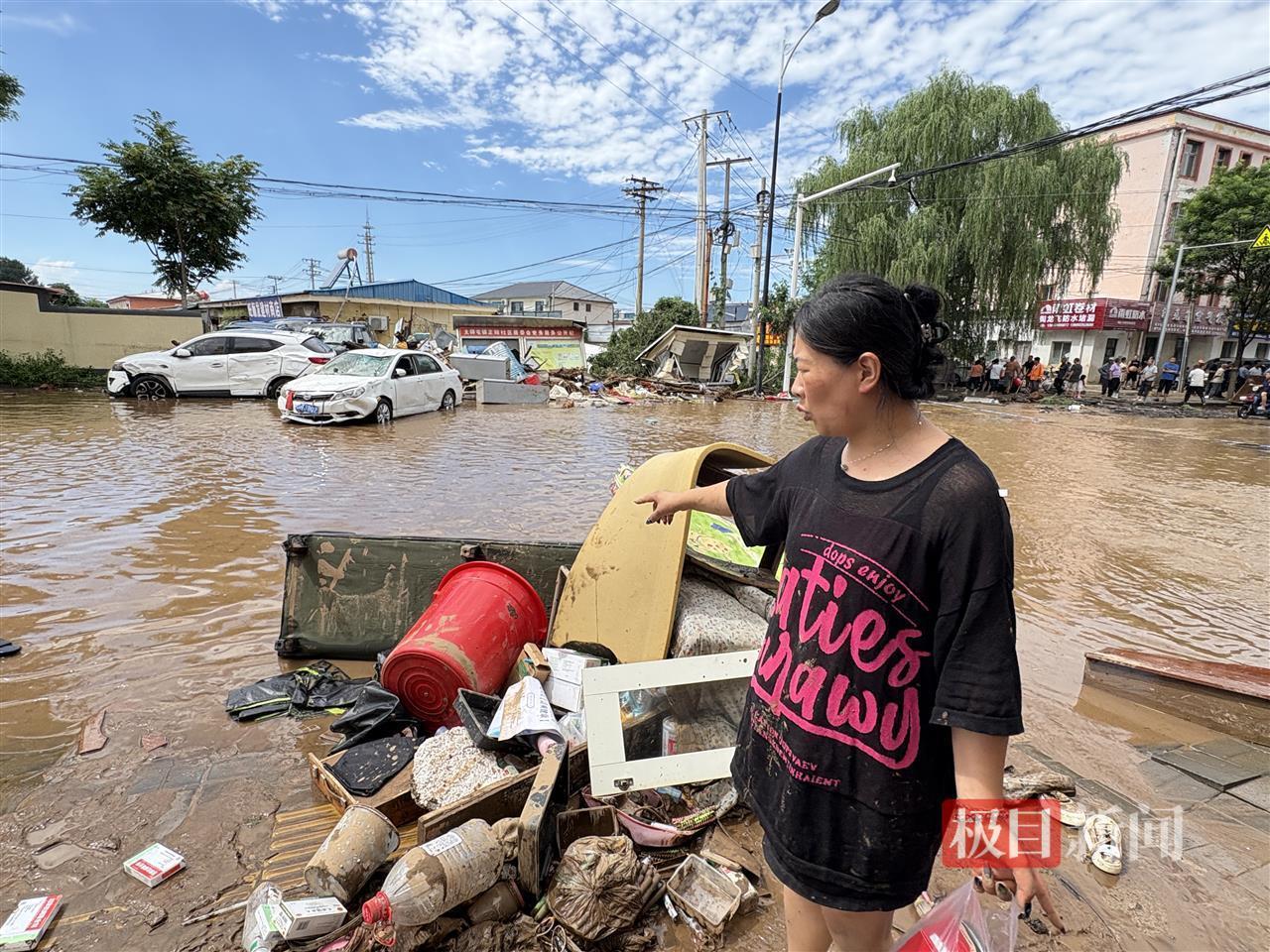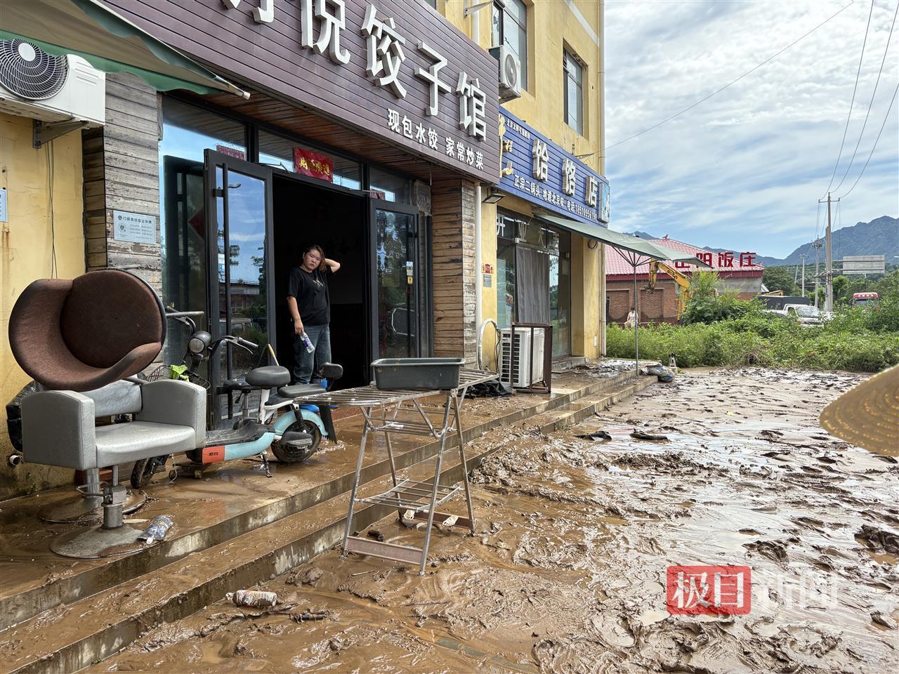 7月29日下午,极目新闻记者在密云区太师屯镇正阳社区附近看到,主街大部分地方积水已经退去,地上残留厚厚一层淤泥,最深地方约有20厘米深,沿街商户正用铲子清理店内淤泥。