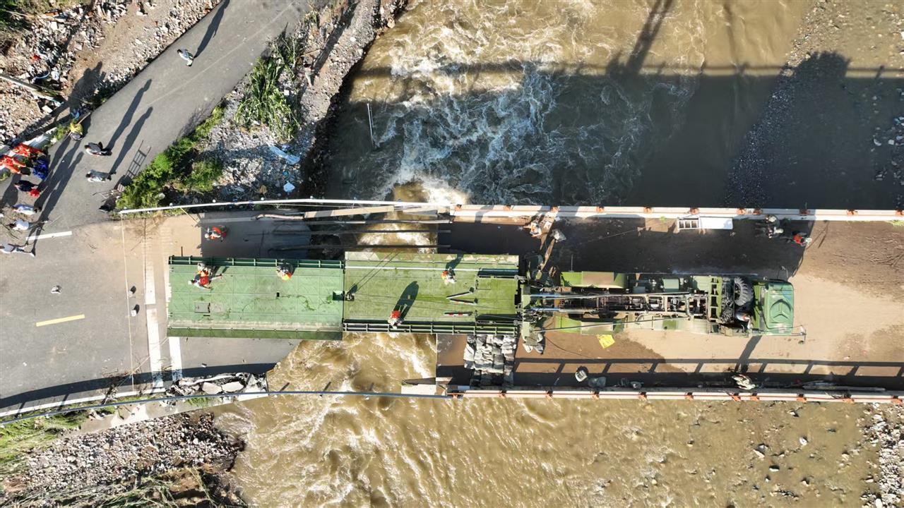 在哪儿架桥、怎样架桥又成了一个新问题。指挥员侯松雷当机立断:“灾情就是命令,时间就是生命,我们必须争分夺秒!”他带领连队骨干认真研判风险、周密制定计划,最终决定在原有桥梁上进行架设,并在桥梁上下游关键位置设置三处观察哨与两处应急救护组,全程严密监控水流变化,确保安全的前提下,尽可能节省时间。