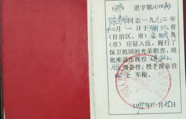 小女儿陈秀华的退役证。
