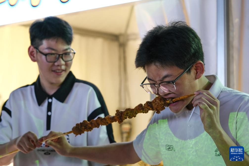 在内蒙古赤峰市,游客们在“文旅体农商融合大集”上品尝特色美食(7月29日摄)。新华社记者 马金瑞 摄