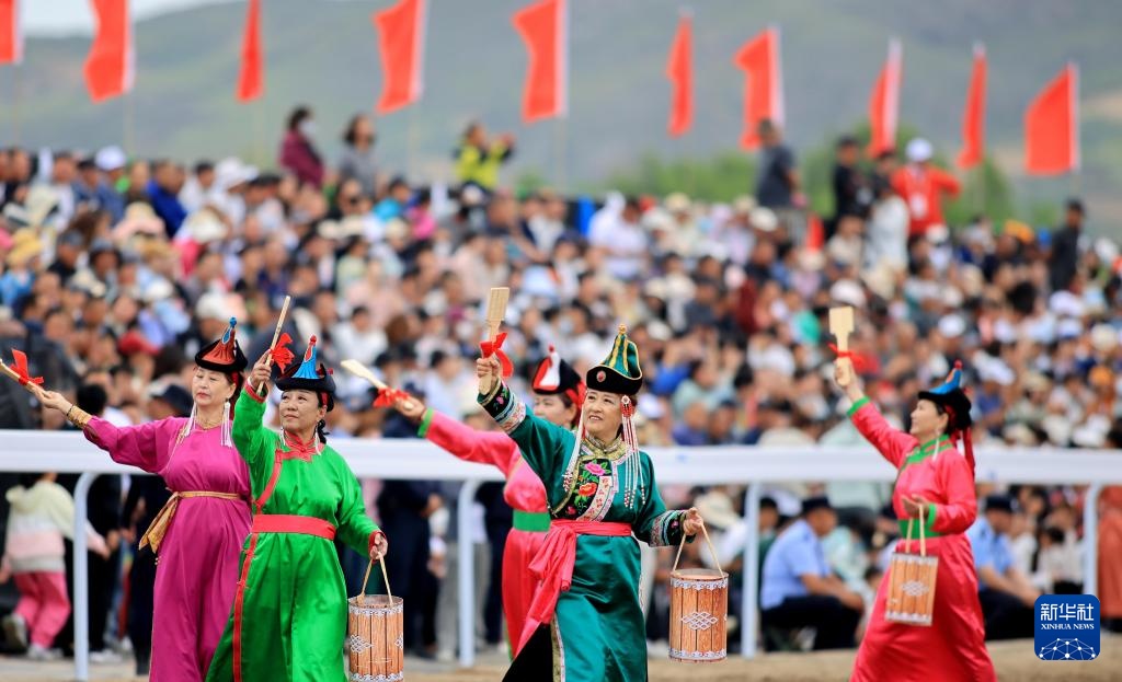 演员在内蒙古自治区第十一届少数民族传统体育运动会(巴林右旗分赛场)开赛仪式上表演(7月20日摄)。新华社发(康文魁摄)