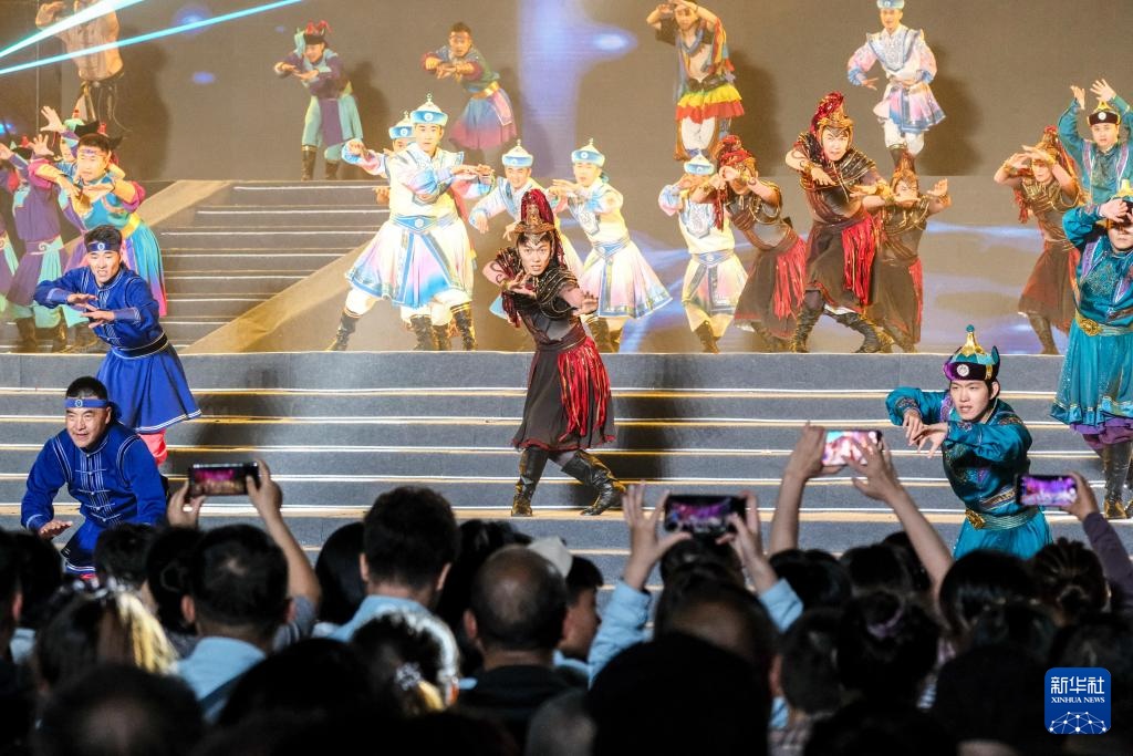 在内蒙古赤峰市,游客们观看民族联欢文艺展演(7月29日摄)。新华社记者 马金瑞 摄
