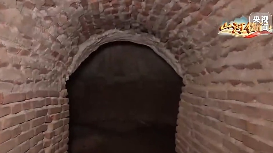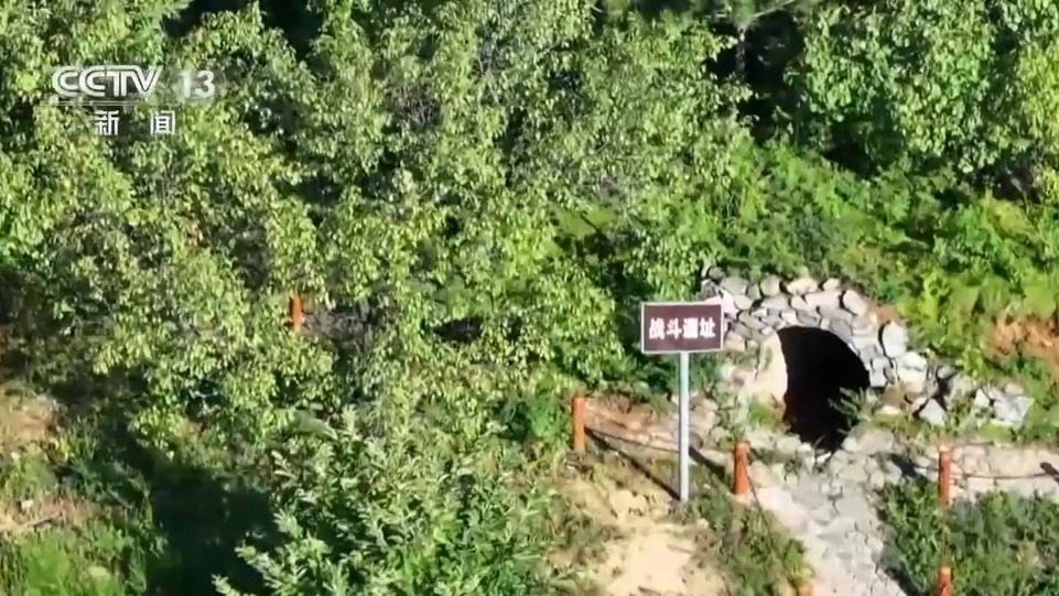 总台央视记者 张安琪:这里是沙塘沟村东侧山头的一个制高点,凭借着这个有利地形,可以从这里居高临下地俯瞰进村的各条道路。这个看起来像防空洞一样的设施,就是当年的一个掩体。当年为了保障八路军的战斗,老百姓跟八路军用一天的时间挖出了一条这样的土洞。现在这个洞已经经过了加固,当年它还是相当简陋的。