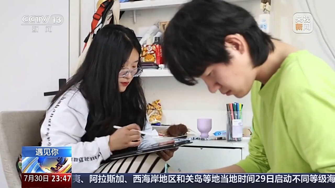 休息时间,他会和女朋友一起去散散步,他的女朋友在很小的时候也失去了听力,她和一飞一样,都喜欢画画。小小的一间出租屋里,承载着两个人的画画梦想。