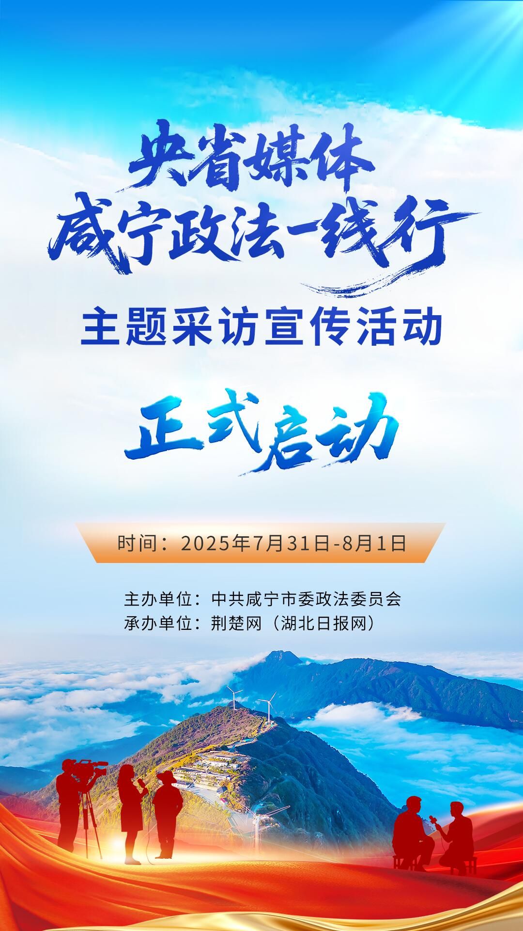 活动于7月31日至8月1日开展,邀请20余名中央及省市媒体记者、专家网评员,把笔触、镜头对准基层治理一线,通过新闻宣传、图文视频展播、评论作品、专题推介等方式,充分挖掘咸宁政法工作的丰硕成果,讲好政法为民的“咸宁故事”。