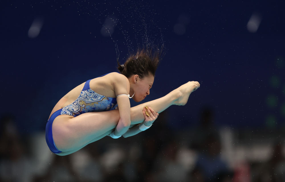 ↑ 中国选手陈芋汐在决赛中。新华社记者 雒圆 摄