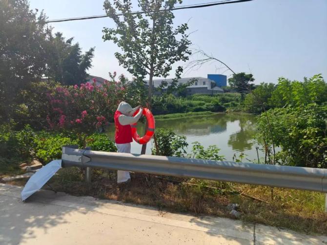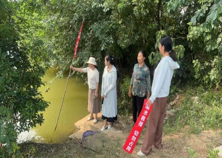 荆门市1.5万余名各级妇联执委、妇联干部、巾帼志愿者化身“安全卫士”,联合相关部门,在1881处重点危险水域及人流集中位置设置警示牌3300个、悬挂防溺水横幅2204条。在大悟县城关镇七里冲村,妇联执委积极配合当地派出所、村(社区)“两委”进行防溺水巡逻。