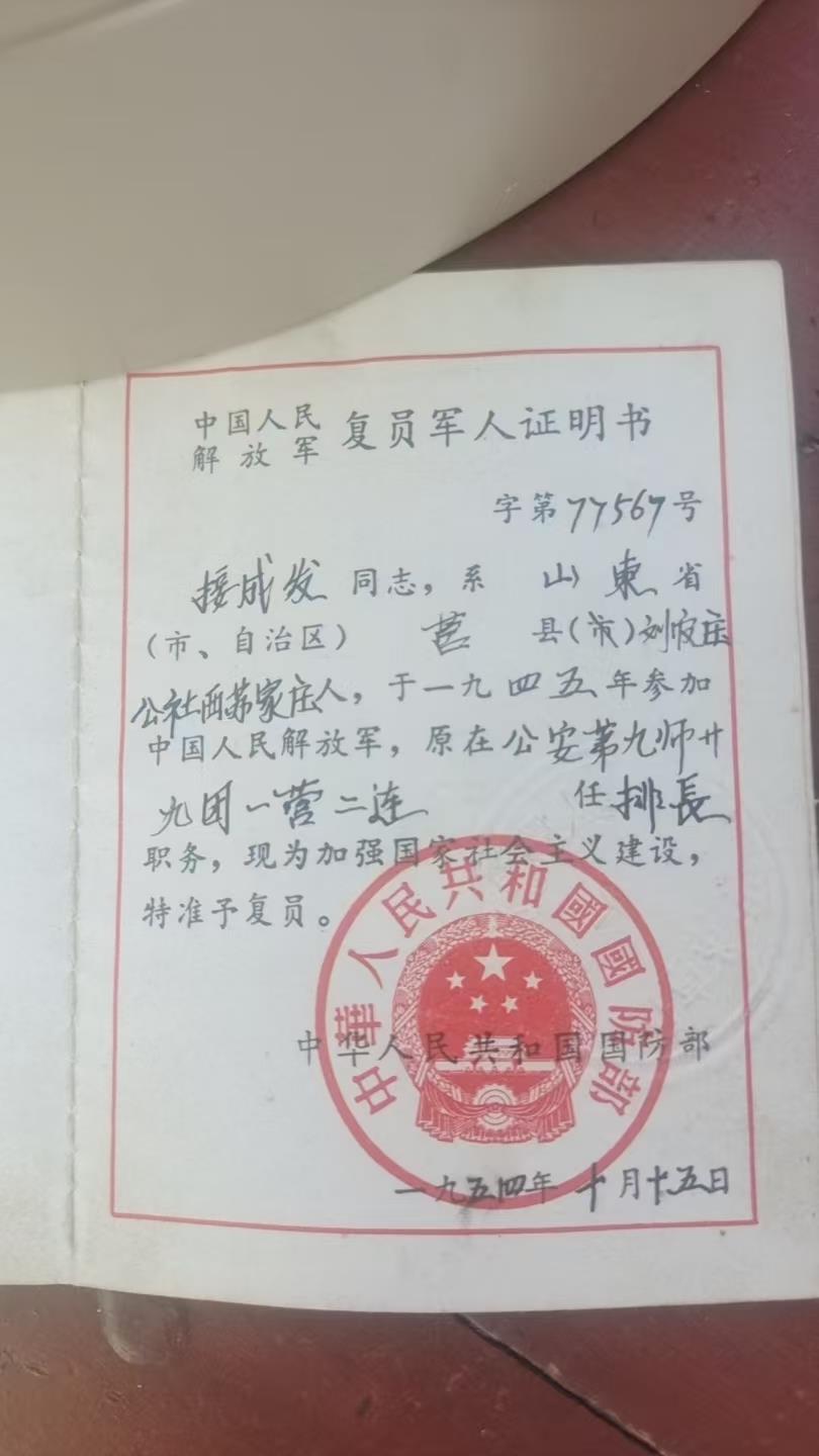 后来,接成法随部队前往东北。老人的小女儿接风珍告诉极目新闻记者,父亲曾担任第40军153师29团1营2连排长,先后参加了辽沈战役、平津战役、渡江战役,转战大半个中国。如今父亲年纪大了,已经不能清晰地回忆起过往的经历。“老人战争期间立过功,曾几次负伤,武昌就是他们部队解放的。”接风珍说。