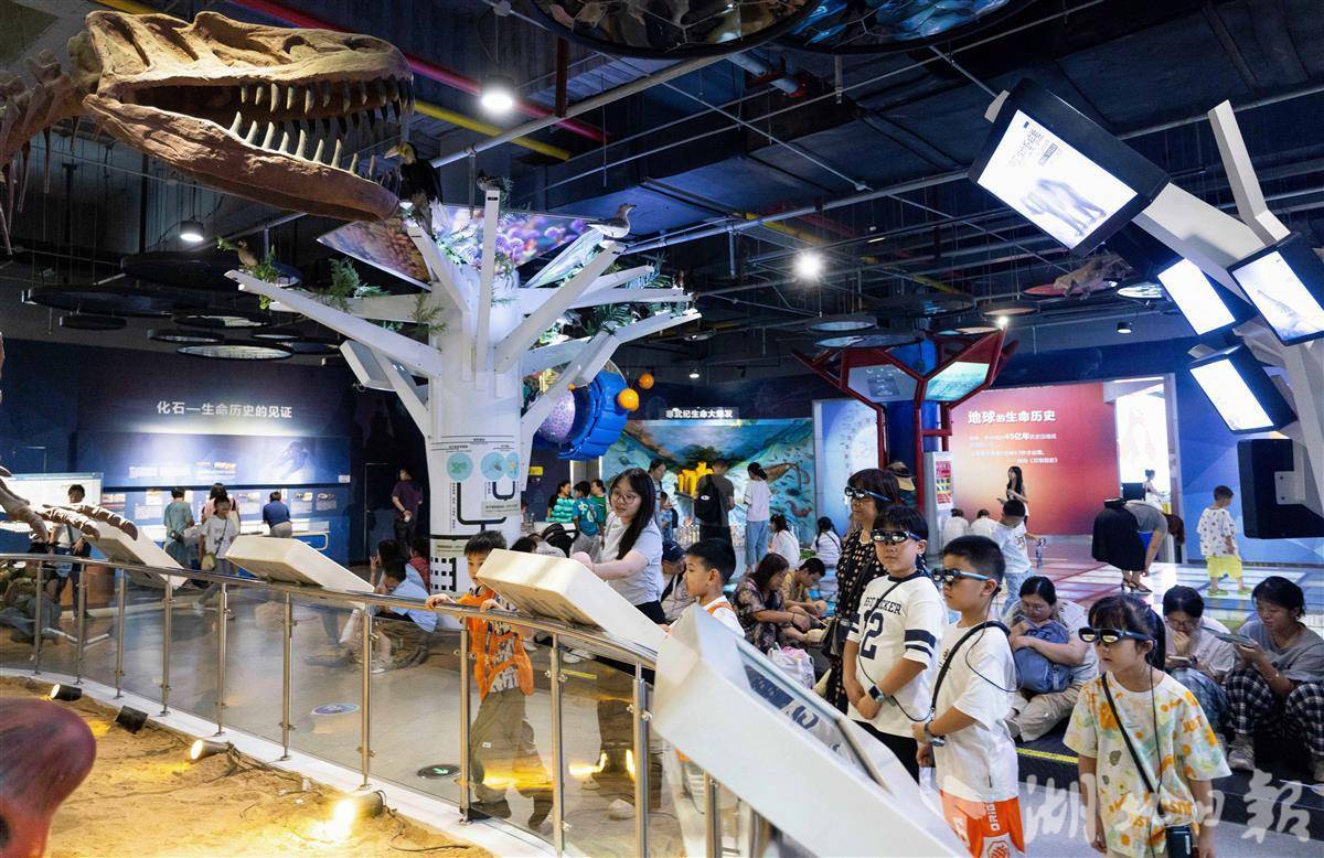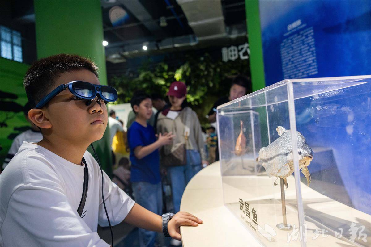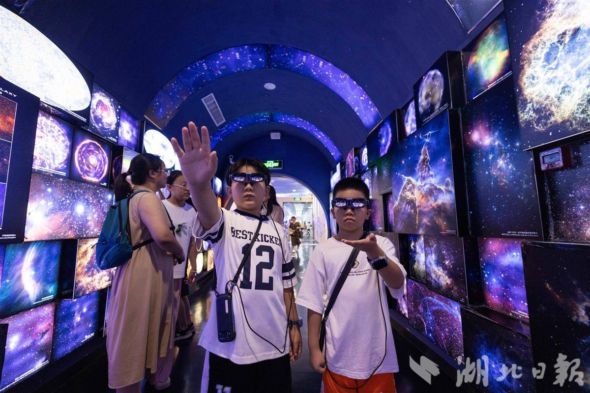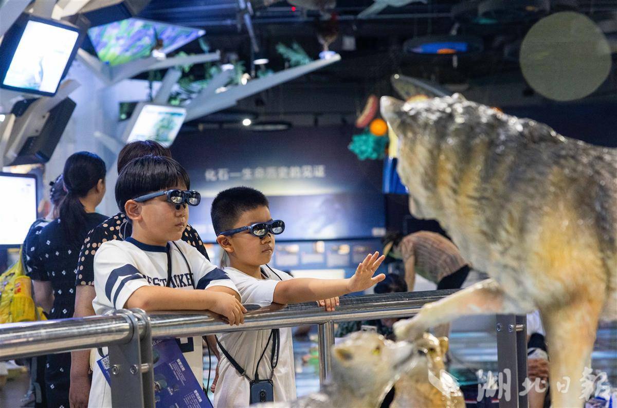 7月31日,武汉科技馆内,小朋友们佩戴AR眼镜沉浸式观展。暑假期间,该馆运用增强现实技术,将宇宙奥秘、生物演化等知识鲜活呈现在孩子们眼前。原本静态的展品在AR智能导览赋能下“活”了起来,孩子们得以“触摸”虚拟星辰、与数字生物互动、甚至穿越恐龙时代。在虚实交融的体验中,孩子们感受科技魅力,畅游知识海洋,尽享科普乐趣。(湖北日报全媒记者 薛婷 通讯员 洪凌燕 摄)