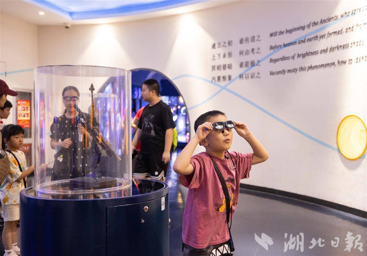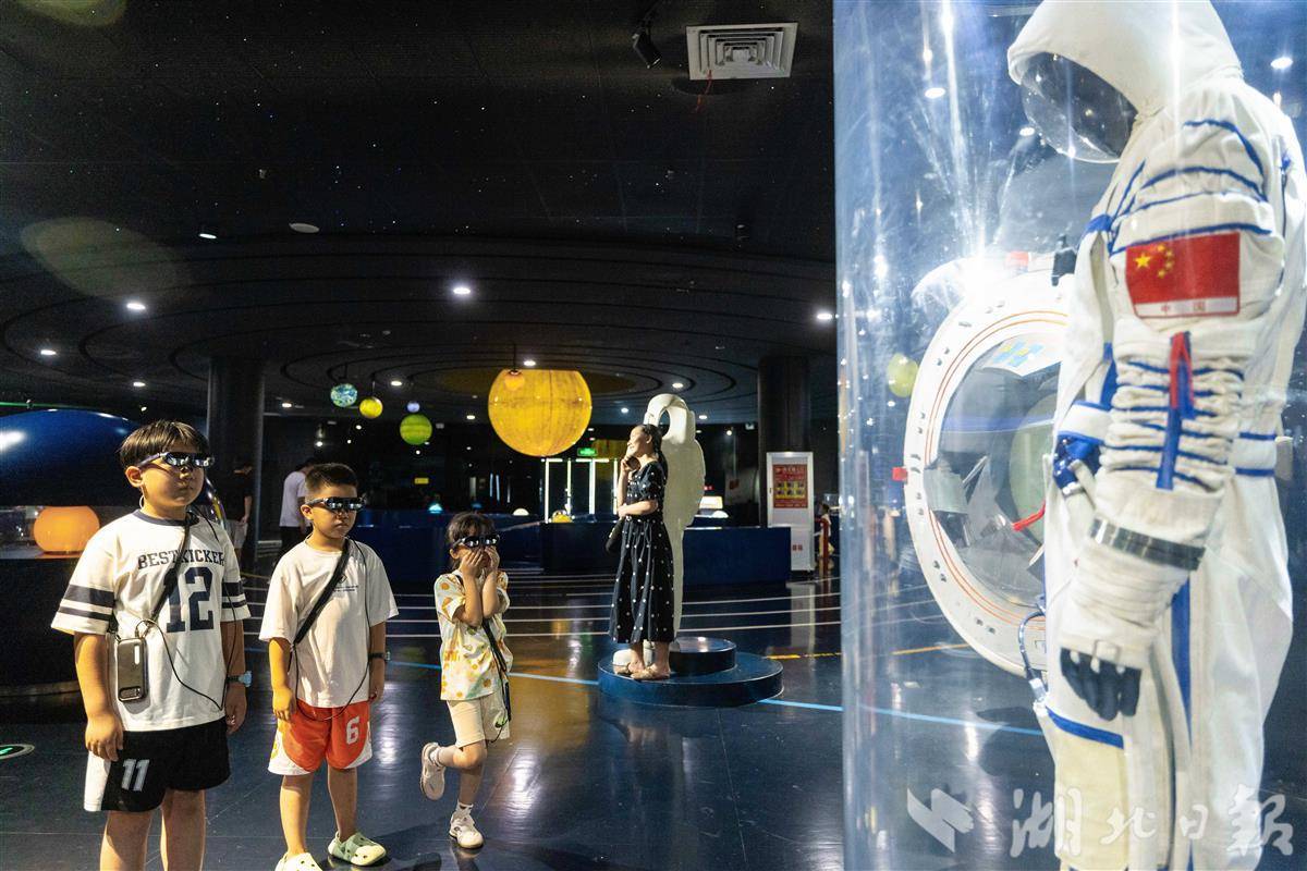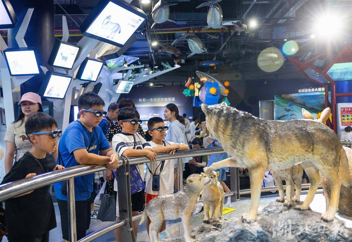 7月31日,武汉科技馆内,小朋友们佩戴AR眼镜沉浸式观展。暑假期间,该馆运用增强现实技术,将宇宙奥秘、生物演化等知识鲜活呈现在孩子们眼前。原本静态的展品在AR智能导览赋能下“活”了起来,孩子们得以“触摸”虚拟星辰、与数字生物互动、甚至穿越恐龙时代。在虚实交融的体验中,孩子们感受科技魅力,畅游知识海洋,尽享科普乐趣。(湖北日报全媒记者 薛婷 通讯员 洪凌燕 摄)