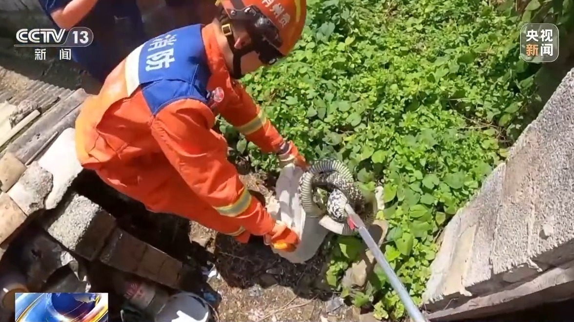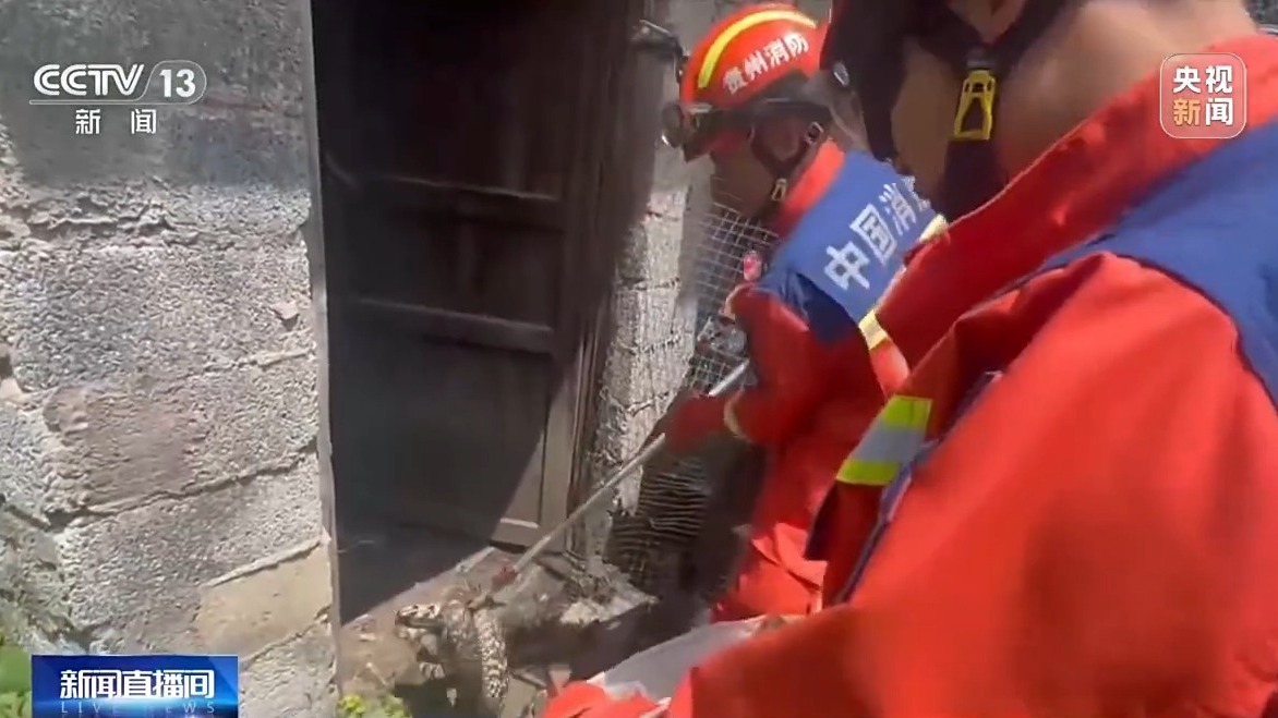 同样,兴义市和六盘水市的消防部门也接到了类似的求助。兴义市郑屯镇一村民在厨房墙角发现一条2米多长的眼镜蛇,两名经验丰富的消防员,用捕蛇钳精准夹住蛇身,逐步将其拽出,装入专用袋,带至无人山林放归。