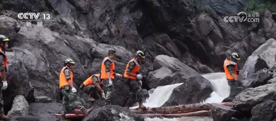 出发不久,一处断崖挡住了去路,面对未知的危险,突击队员们利用救援绳索降到崖底继续挺进。经过两小时的艰难跋涉抵达救援地,并将16名老人安全转移安置。接受采访的官兵说:“作为党员,当时就没有想着危不危险,因为我们晚一点进去,村民就肯定多一分危险,瞬间就想着尽快到村子里面去,把情况搞清楚。”当地村民说:“他们背着、抱着、搀着,担架抬着,通过两个多小时,把老人带到通车地点,感谢子弟兵辛勤的付出。你们辛苦了!”