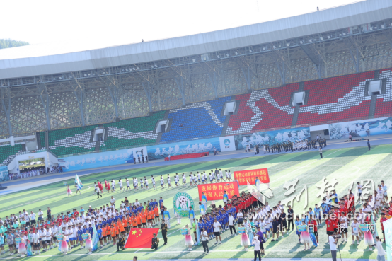 湖北省中学生组足球赛在郧西县文体中心开幕。 延洪鑫 摄