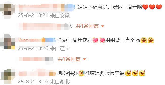 有球迷评价,奥运夺冠圆梦,一年后与心爱的人携手人生,恭喜再次圆梦!