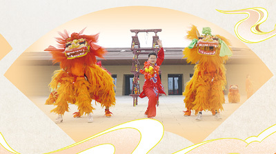 这是起源于当地陶寺村的民俗活动“天塔狮舞”,也是北狮技艺的代表之一。