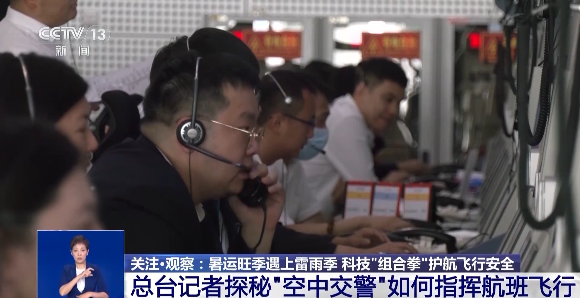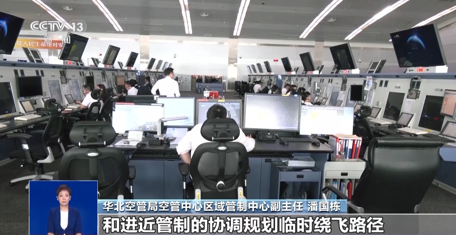 总台央视记者 曹丹:这个区域就是华北空管局的区域管制中心,在飞机飞出了终端区之后,就会交由这里来进行指挥。在暑期的时候,这里每天指挥的飞机数量能够达到6000架次左右。