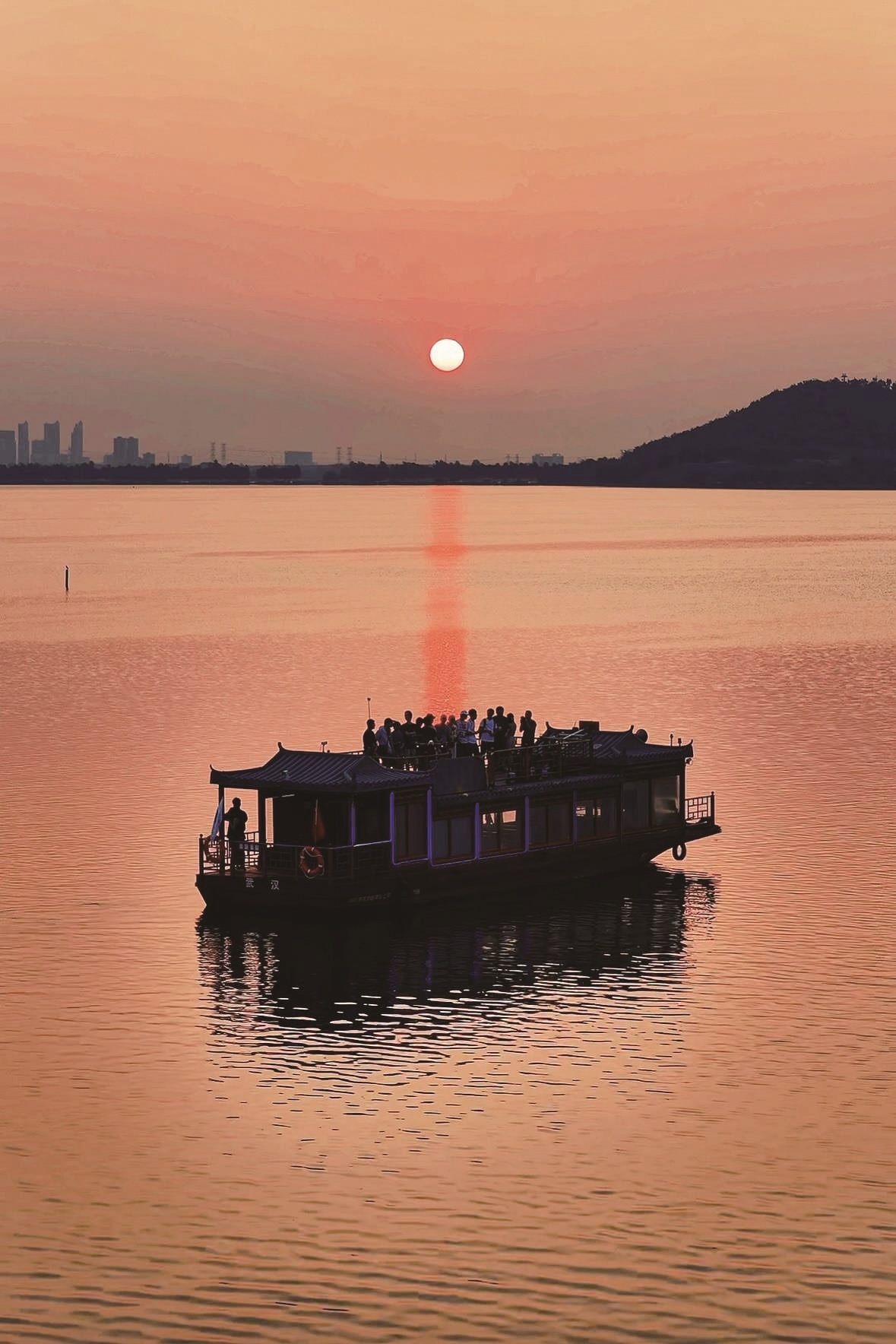 据介绍,专线游船配备舒适座椅和空调设施,确保夏日清凉体验。航行途中,专业讲解员将为游客讲述东湖的传说与生态故事,让旅程更添文化韵味。同时,湖畔“湖山咖啡日出音乐会”的悠扬乐声将与东湖浪声相和,为清晨注入艺术气息。日出观赏结束后,游客可继续乘船游览东湖,途经湖光阁、梅园等景点,深入感受“城市绿心”的清新与宁静。