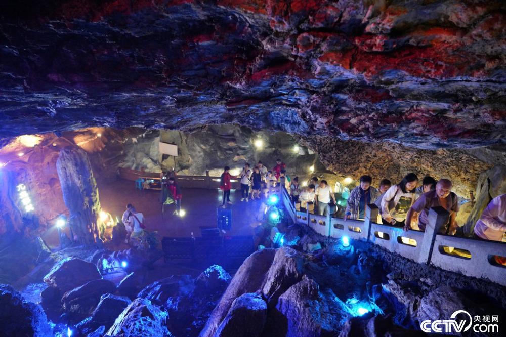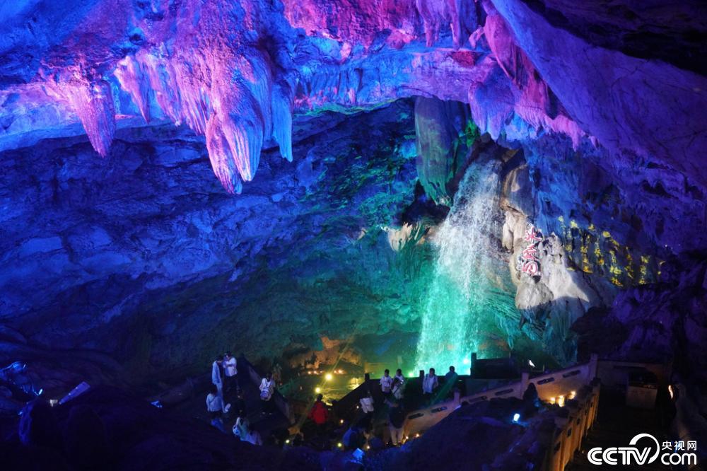 三伏天,浙江金华双龙风景旅游区喀斯特地貌溶洞流光溢彩,清爽宜人,洞温为17℃左右,游客在溶洞休闲避暑,享受夏日清凉。 视觉中国