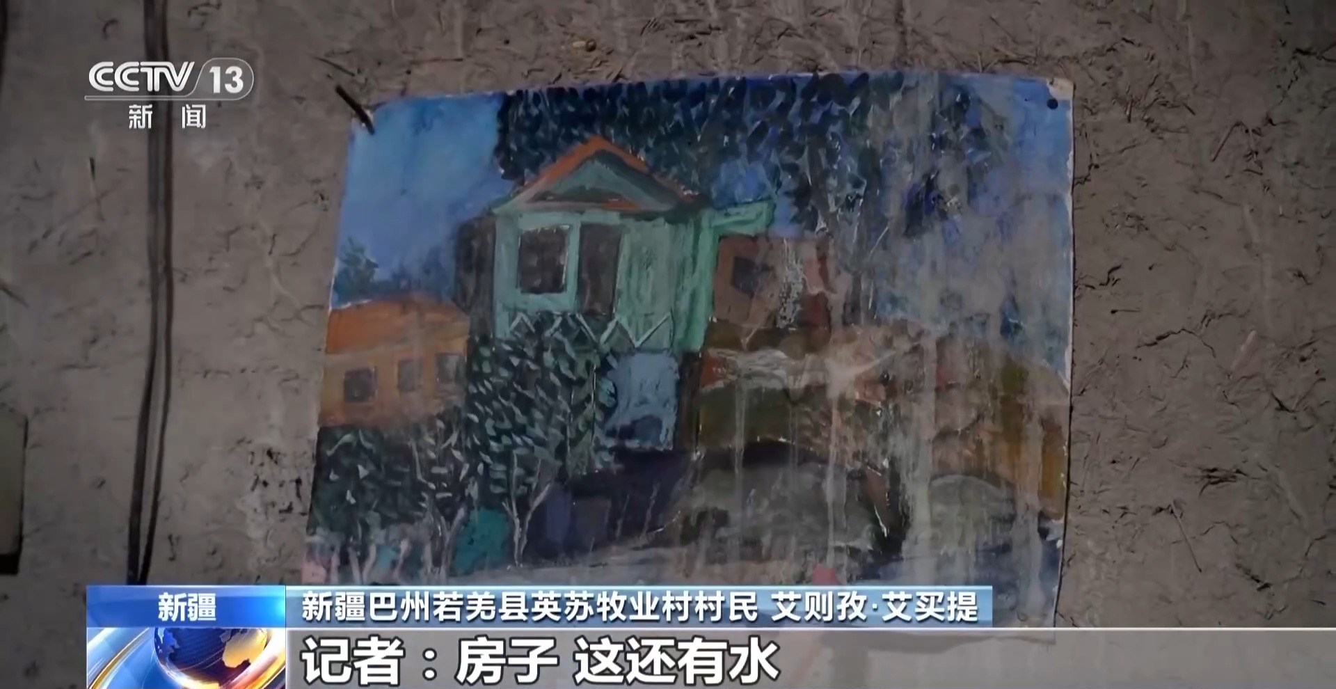 曾经大家住在土坯房和篱笆围成的院子里,走进一户人家,仍然保留着居住的痕迹,墙上这幅被主人遗落的画引起了记者的注意。