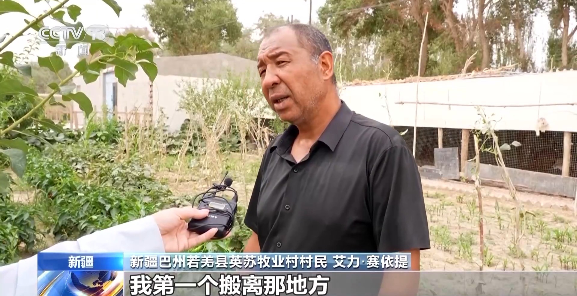 新疆巴州若羌县英苏牧业村村民 艾力·赛依提:我第一个搬离那地方,不然的话那个戈壁滩,你一辈子放羊吗?现在看,国家给我们弄的,全部有电,晚上走路也不害怕,随便走,路也全部是黑柏油路。