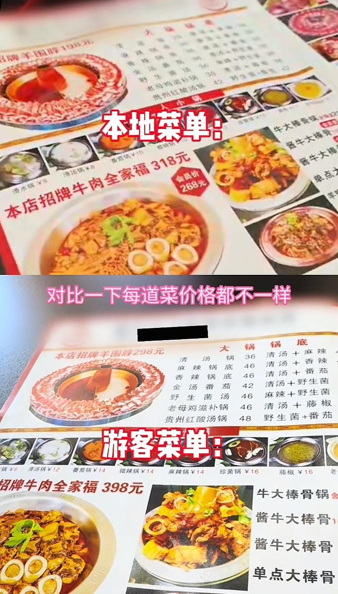 近日,黑龙江一美食博主反映,内蒙古呼伦贝尔市海拉尔区一火锅店使用两份价格不同的菜单招待客人,本地游客菜单上的菜品价格,普遍低于外地游客菜单上的菜品价格,其牛肉菜品存在缺斤少两的情况。8月5日,当地市场监管局工作人员告诉记者,已对涉事门店进行处罚,相关部门正在调查处理。