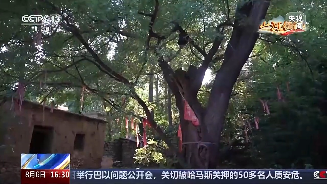 院内古树树冠硕大,枝叶茂密,笼罩着整个小院。槐树的正中是一棵直挺挺的椿树,两树浑然一体,紧密拥抱在一起,当地人称为槐抱椿。抗日战争期间,老百姓为部队筹粮筹款、掩护伤员、传递情报曾在树下进行,可以说它是军民鱼水情的象征,也是军民团结,生死与共的历史见证。