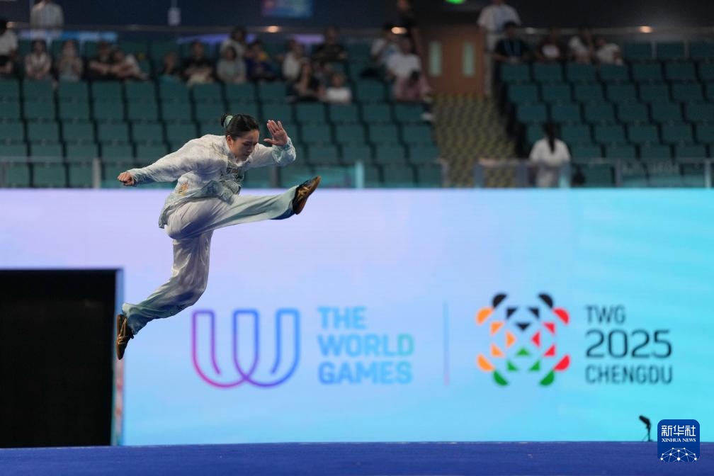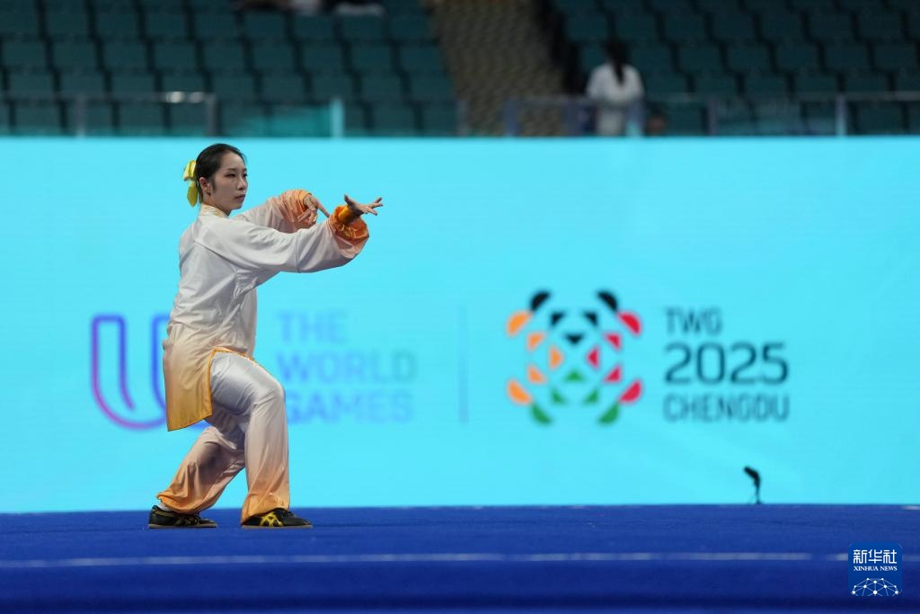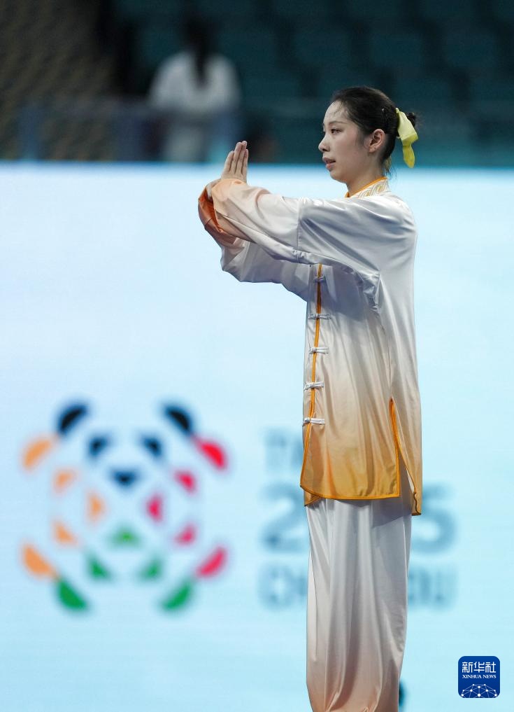 当日,2025年成都世运会女子太极拳-太极剑决赛在成都高新体育中心举行。