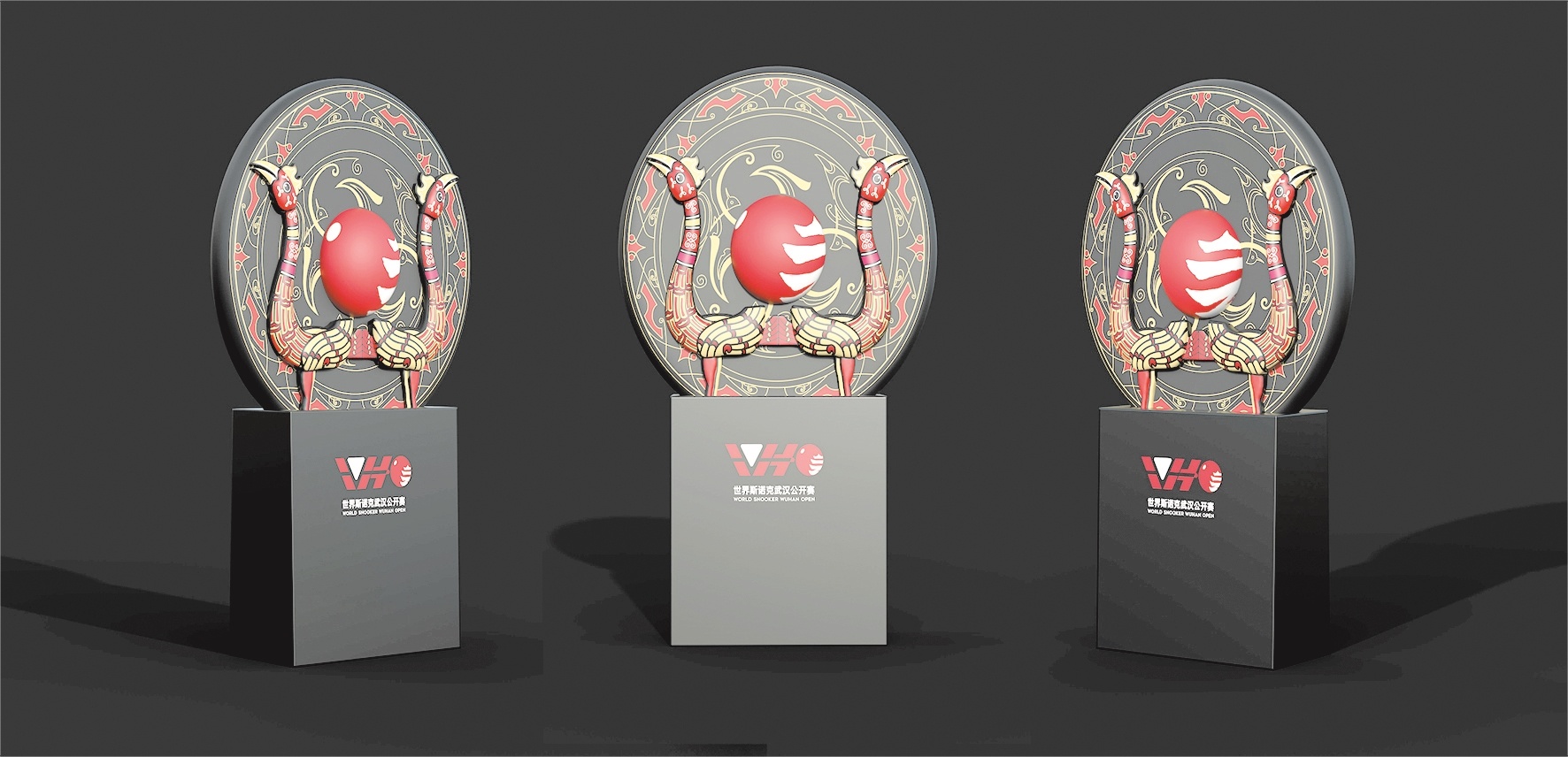 今年的武汉公开赛冠军奖杯体现了恢弘灿烂的楚文化。其外观以“天圆地方”为灵感,将斯诺克之圆与球桌之方相结合,融入楚文化图腾“凤鸟”图形和国家级非遗“楚式漆器髹饰技艺”,体现了力与美、动静交融、攻守平衡的理念,与斯诺克运动的秩序、平衡、公平竞争价值观相契合,诠释出“传递斯诺克精神,深探荆楚文化,讲述武汉城市故事”的设计理念。