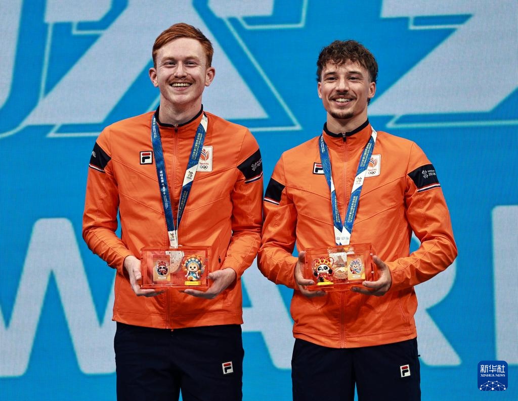 8月8日,荷兰队选手费尔德赫伊曾(左)、莫尔在颁奖仪式上。