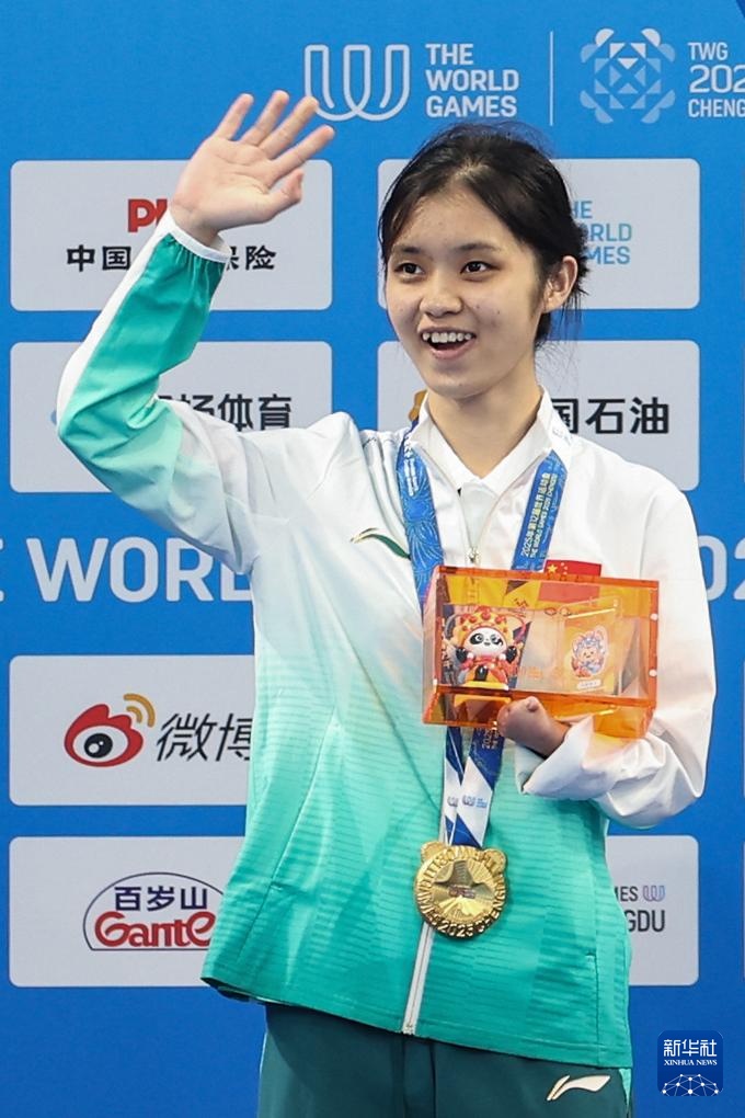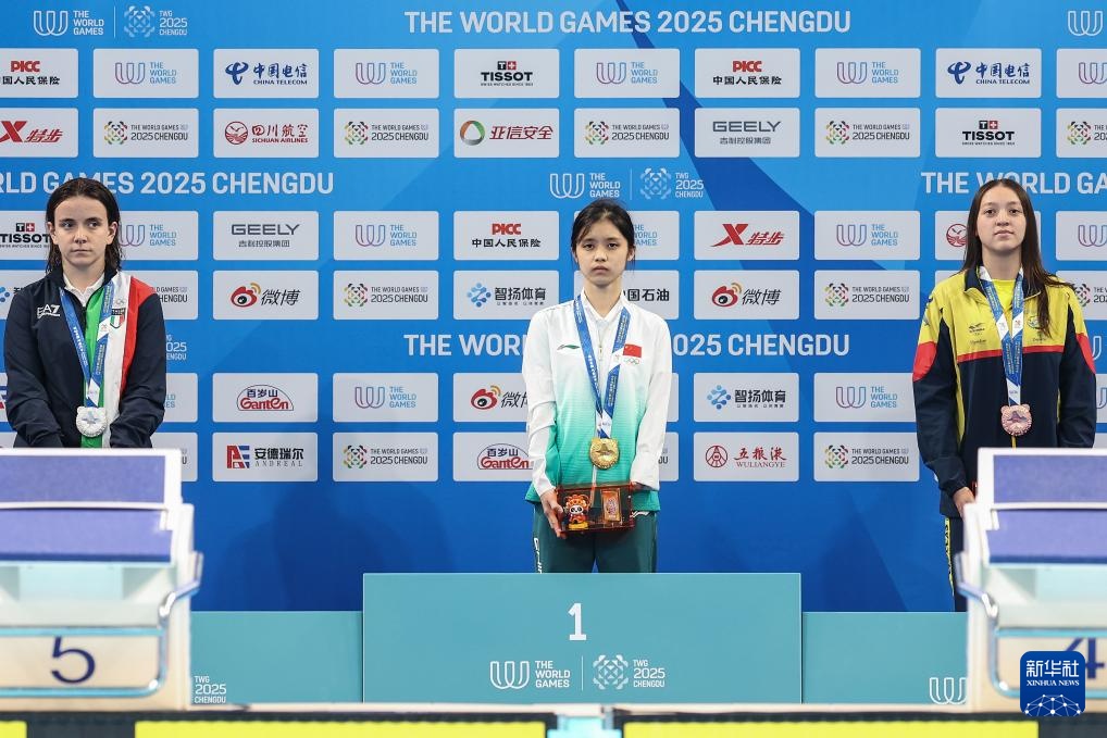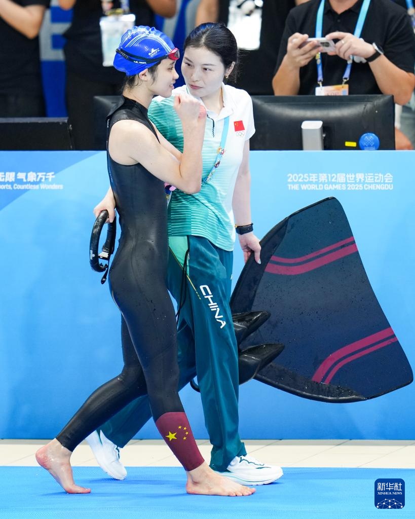 当日,2025年成都世运会自由潜水女子动态有蹼FFS1-FFS2决赛举行,中国选手黄诗雨以149.5米的成绩夺冠。