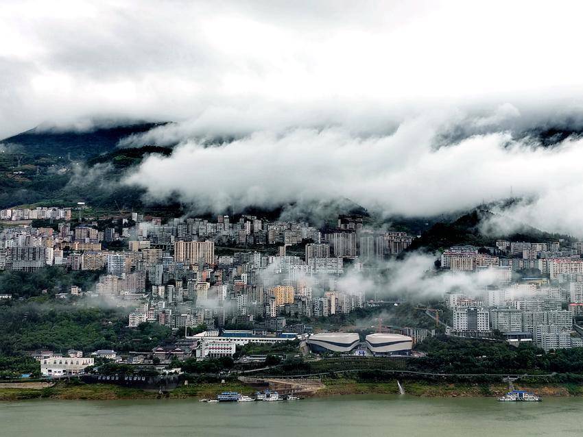 一场久违的夏雨光临巴东山城雨后,山城被云雾温柔地环绕,时而如轻纱般缥缈,时而又似海浪般翻涌。云雾在山间穿梭游走,将山城的轮廓时而遮掩,时而勾勒,增添了几分神秘的韵味。