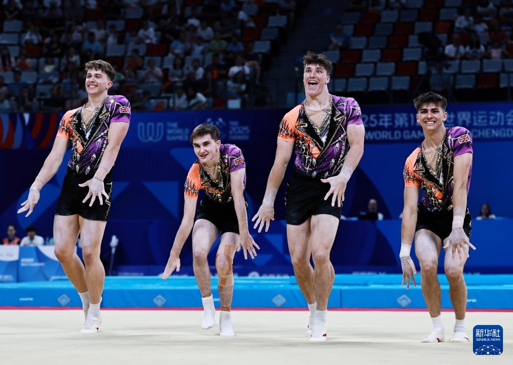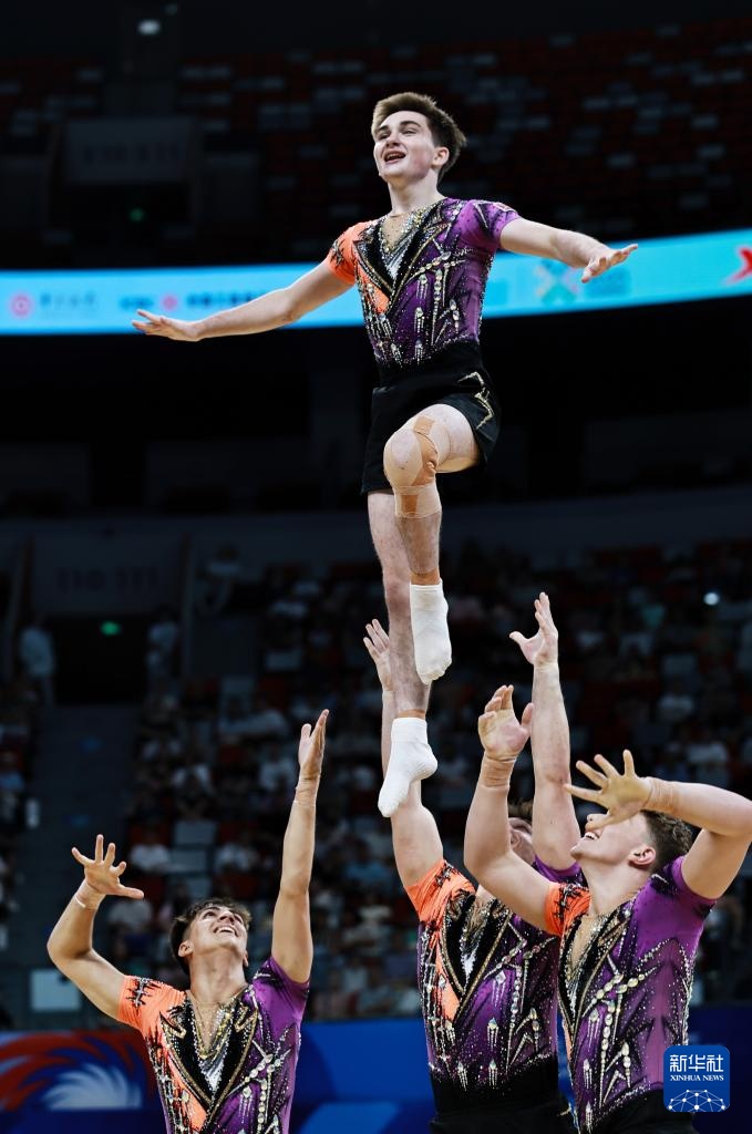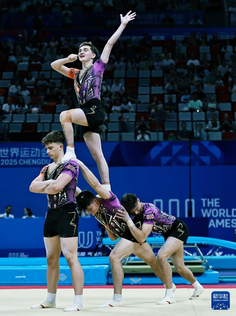 当日,2025年成都世运会技巧男子集体(男四)决赛举行。