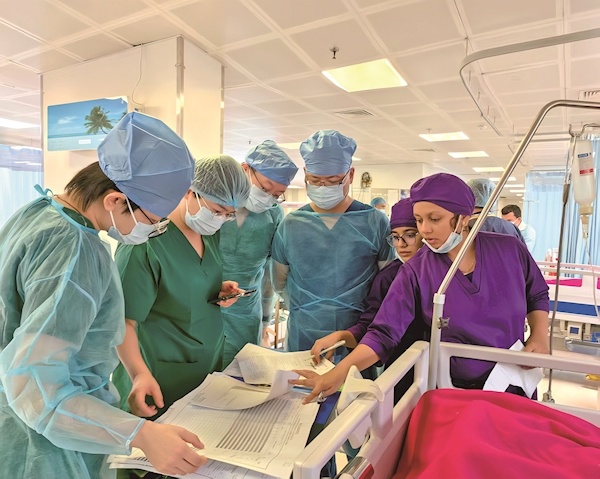 在达卡的8天里,中国团队为7名危重症患者主刀,22名伤者在他们的参与治疗下,逐步走向康复。
